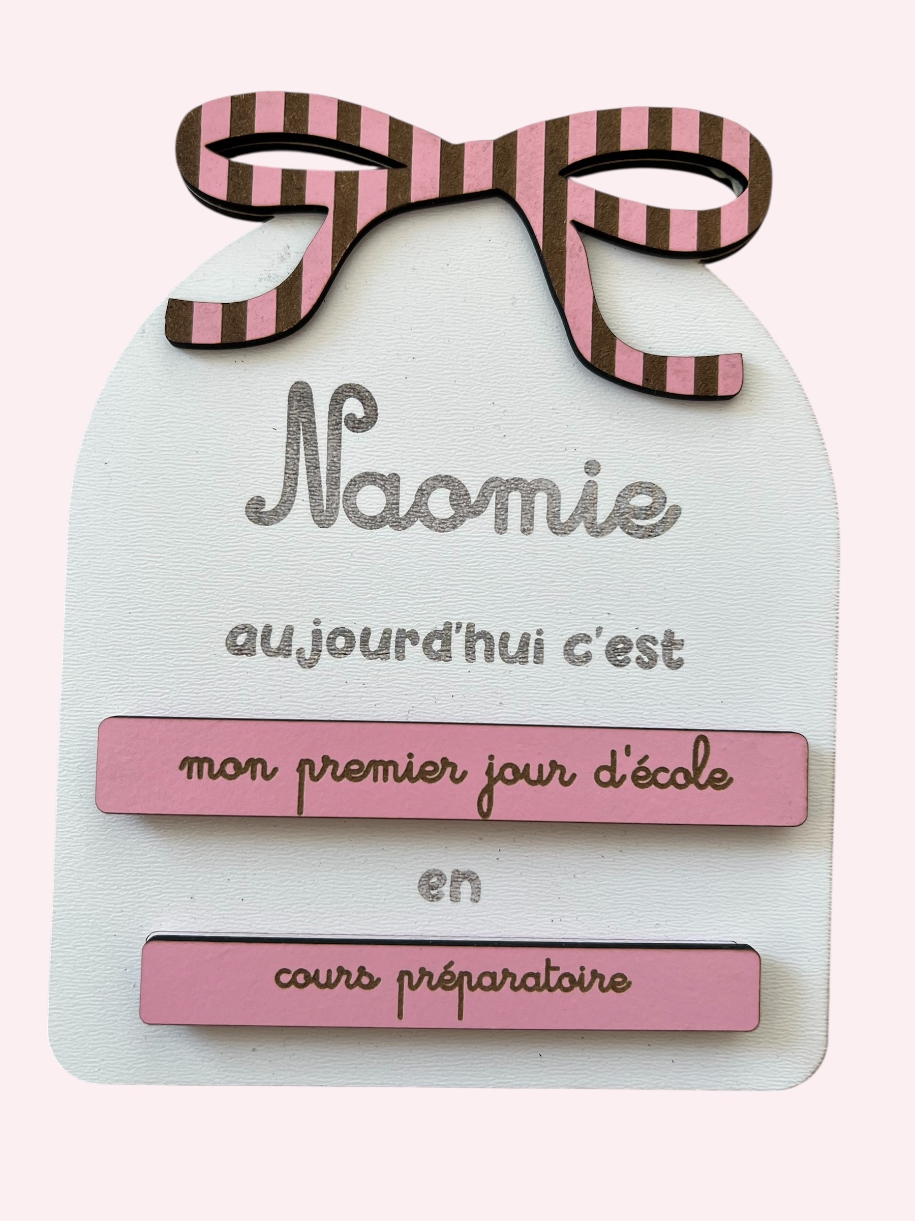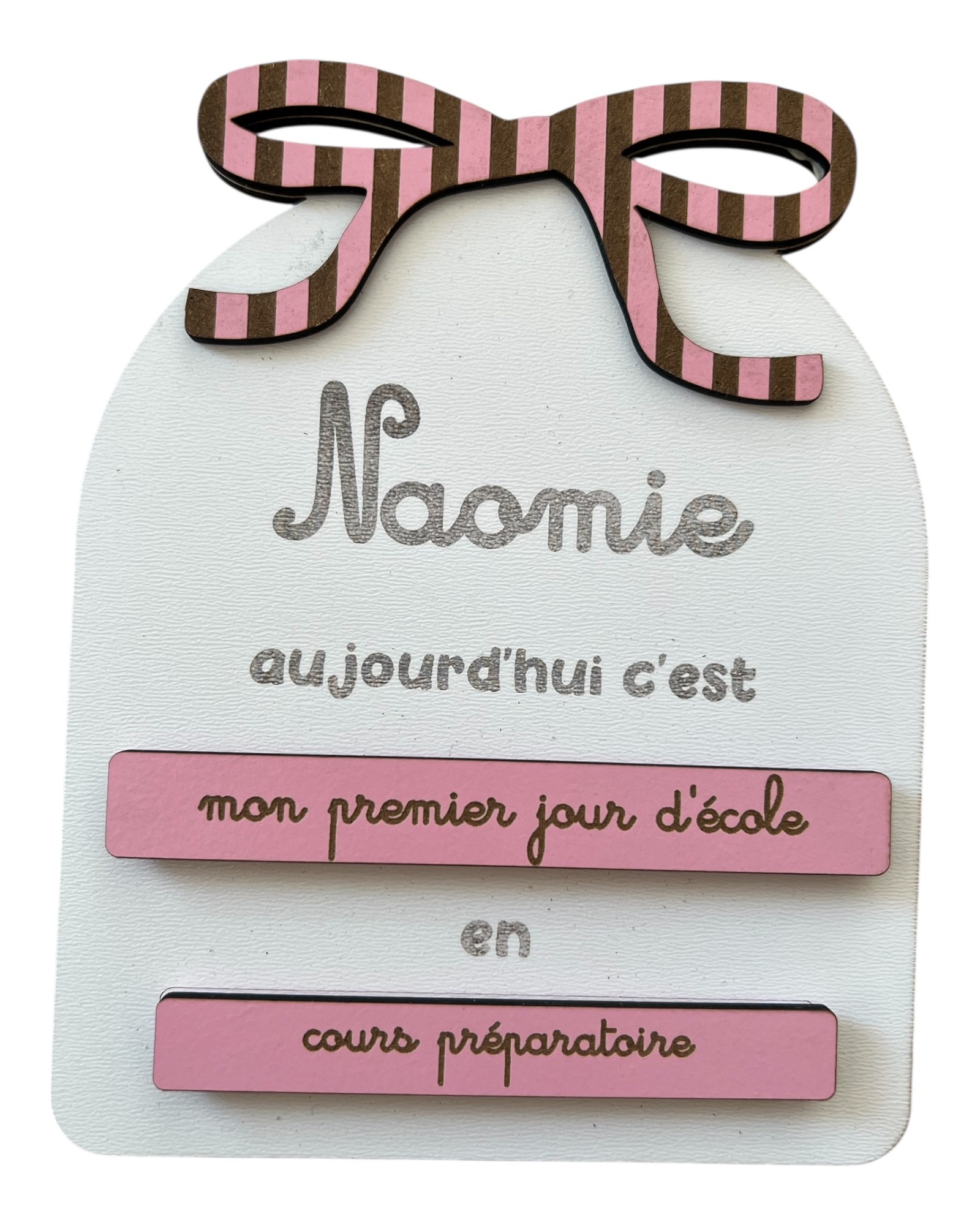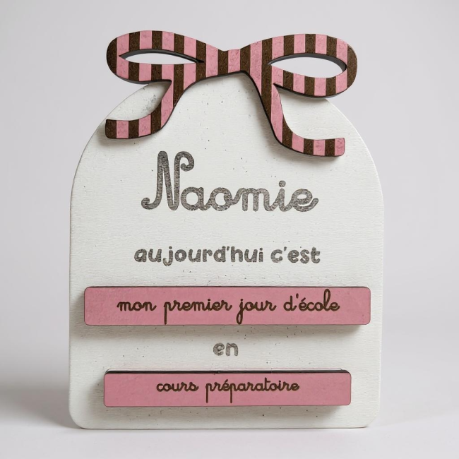 Choisissez votre style et ajoutez le prénom de votre enfant, sa classe, Le prénom est proposé en gravure ou en 3D découpée pour un rendu encore plus original.