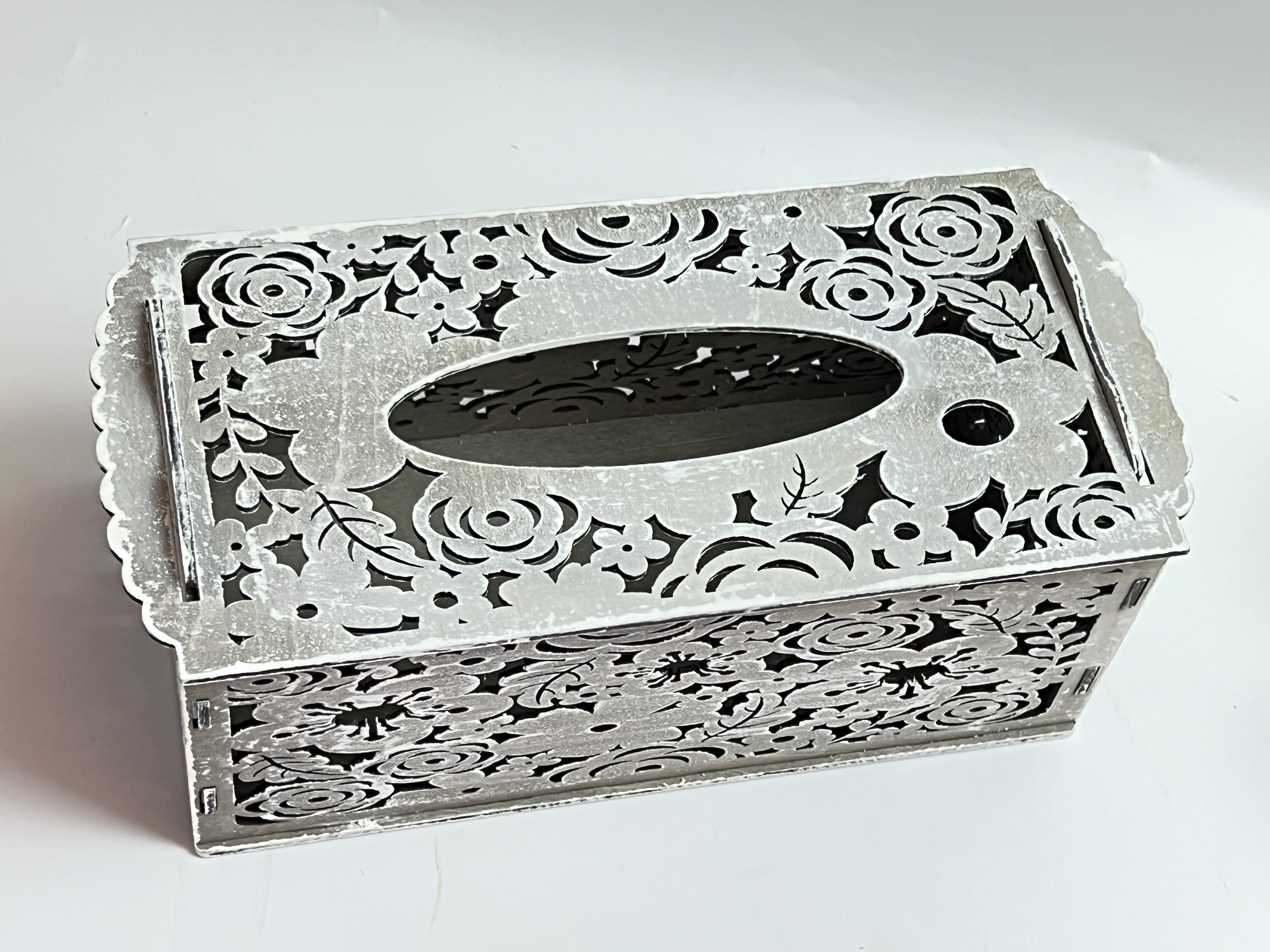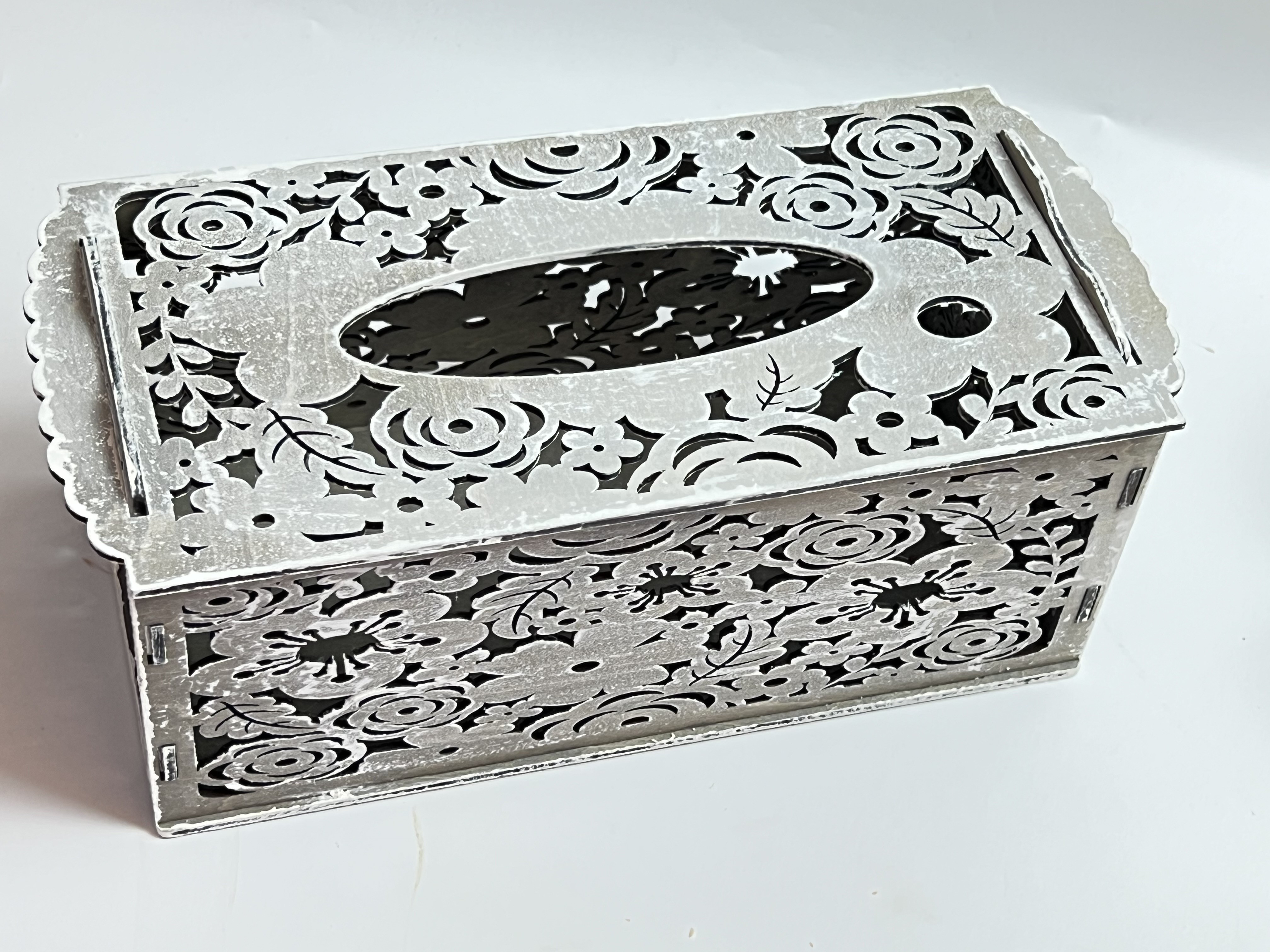 Ajoutez une note d'élégance et de romantisme à votre quotidien avec cette splendide boîte à mouchoirs en bois.