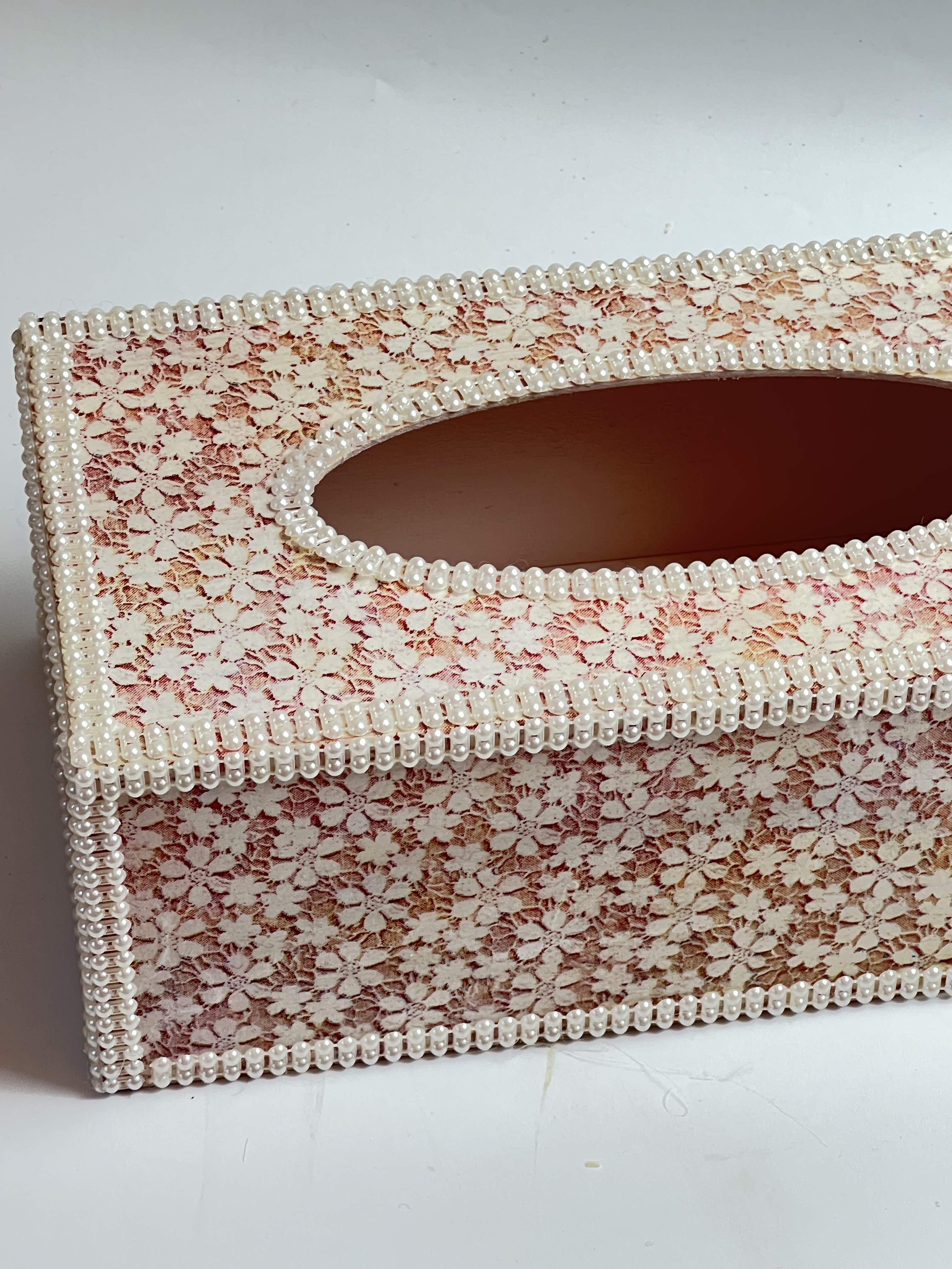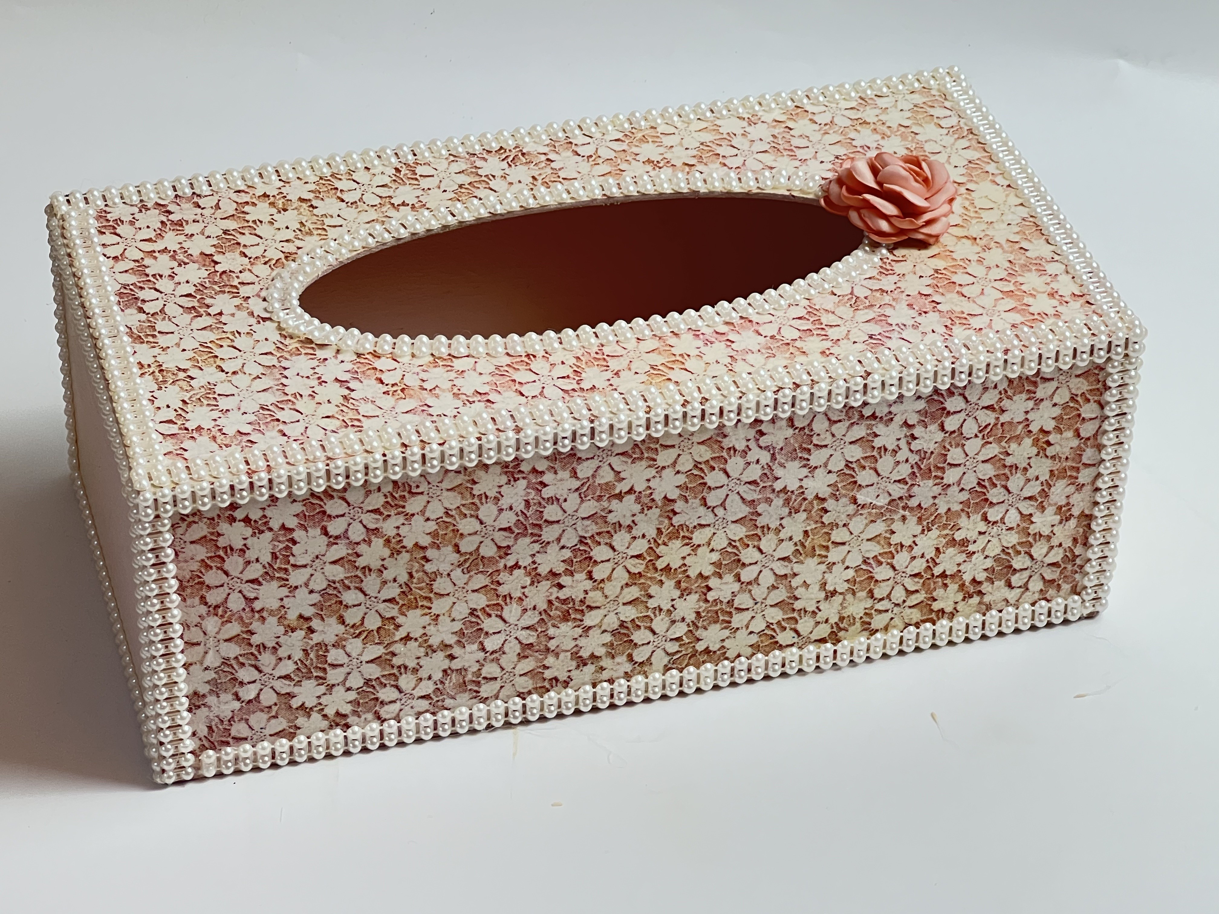 Cette boîte à mouchoirs en bois est une pièce unique, décorée dans un style romantique chic qui saura apporter une touche de douceur et d'élégance à votre espace.