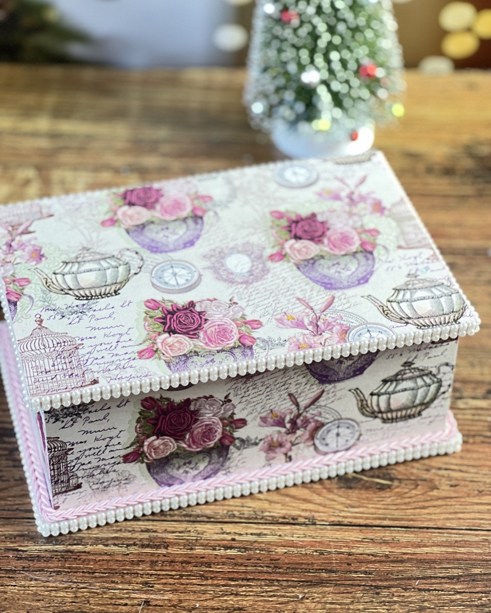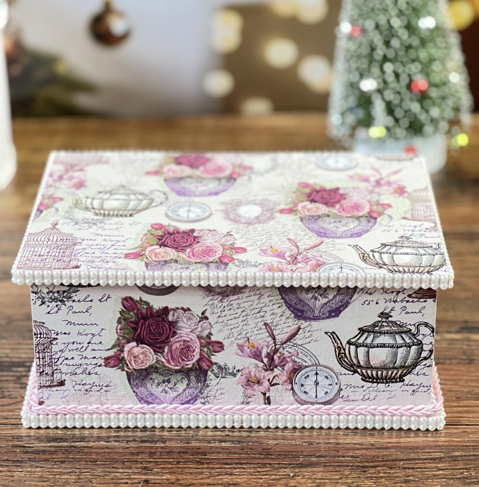 Alliant esthétique et fonctionnalité, cette boîte de style romantique est l’ajout parfait à toute décoration intérieure. Offrez-vous ou offrez à vos proches un objet artisanal unique et plein de charme.