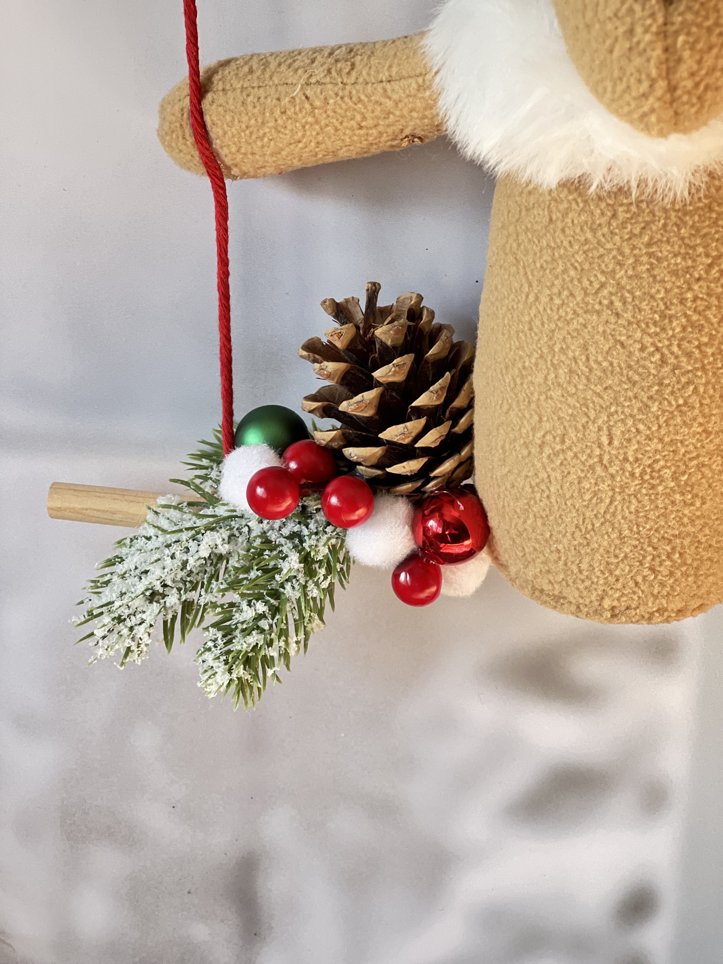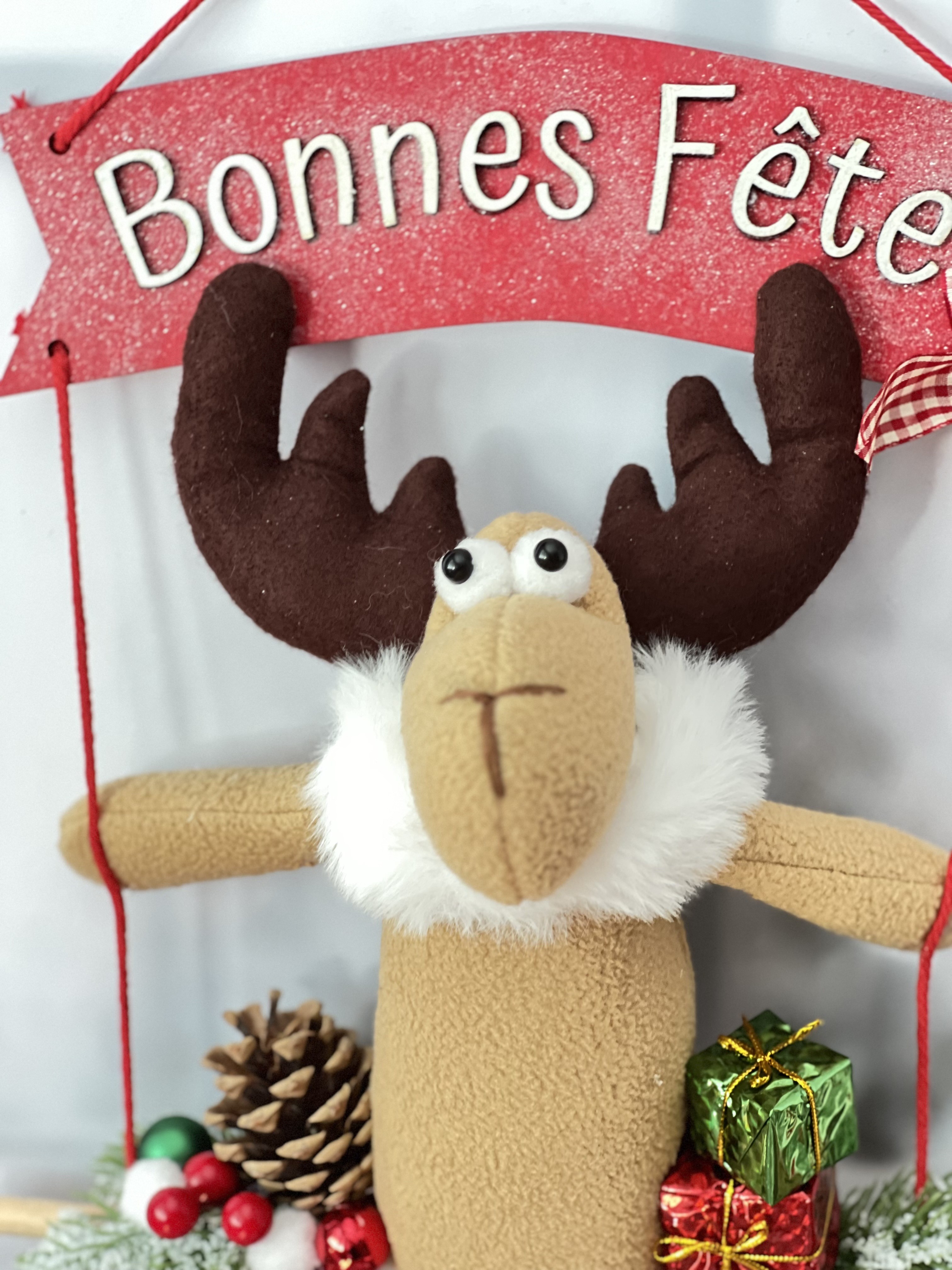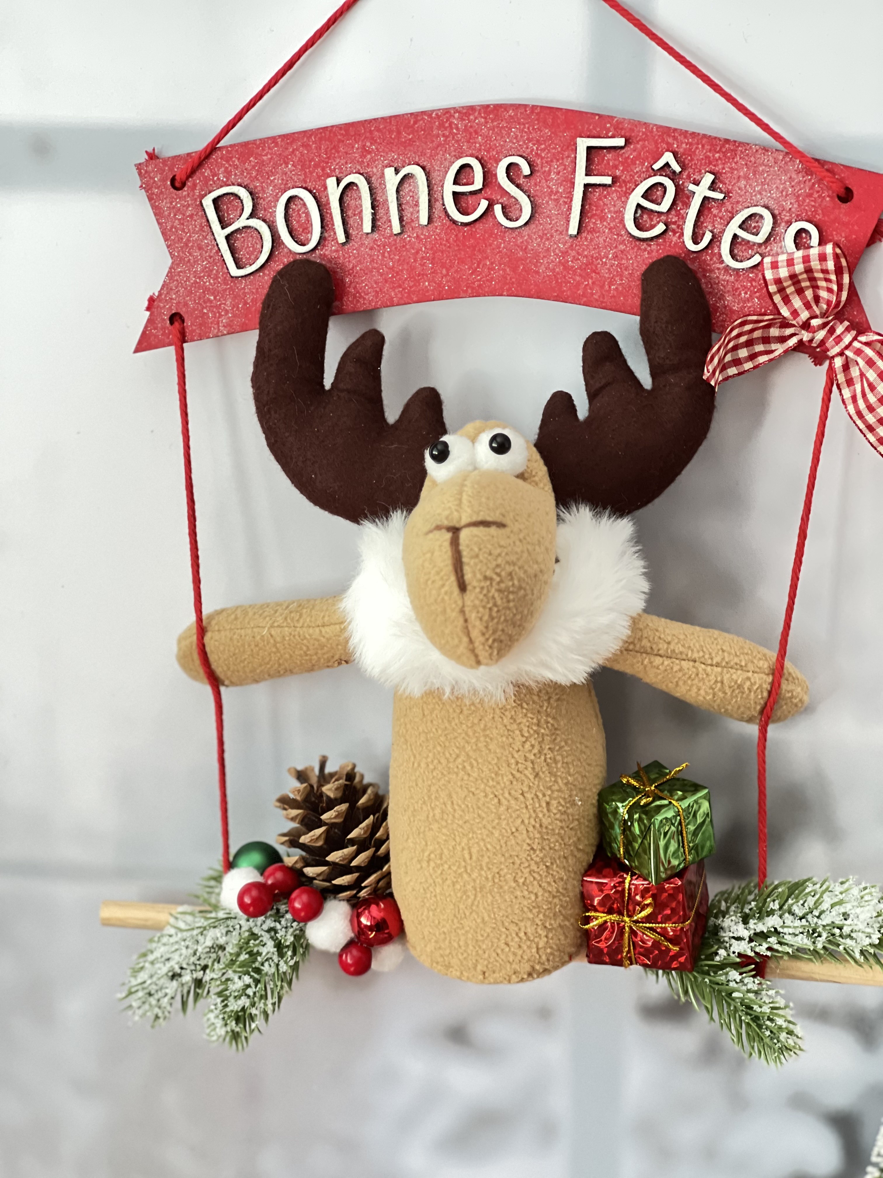 Imaginez un petit renne, adorablement assis sur une balançoire, avec au-dessus de lui une pancarte accueillante indiquant « Bonnes fêtes ». Chaque élément de cette décoration, du renne à la balançoire en passant par l'inscription, est soigneusement fabriqué à la main, garantissant ainsi un modèle unique pour chaque client.