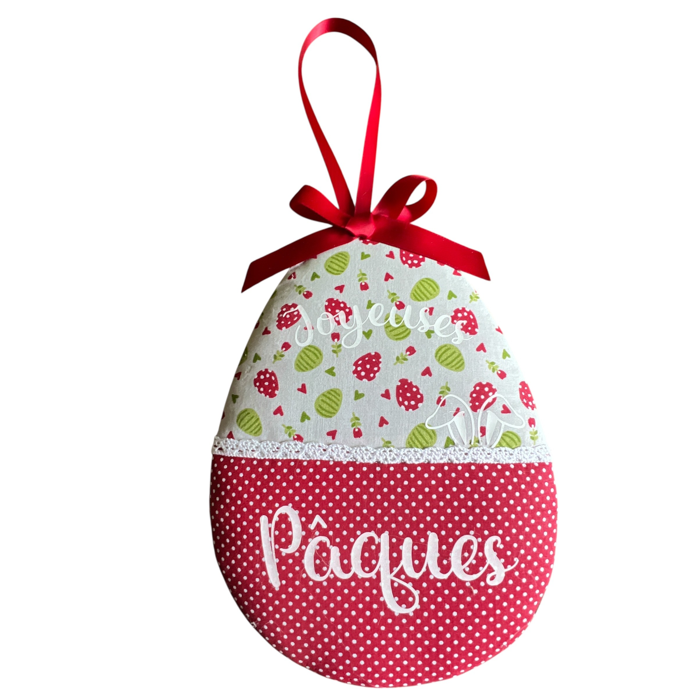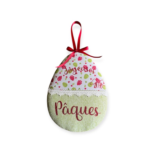 • Inscription thermocollée : L'œuf est orné d'une inscription « joyeuses Pâques », ajoutant une note chaleureuse et accueillante à votre décoration.