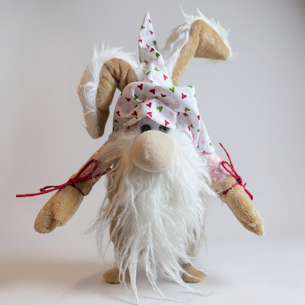 Ce charmant bonhomme, avec ses grandes oreilles de lapin, est l'ajout parfait pour insuffler une ambiance festive à votre maison. Que ce soit pour égayer votre intérieur ou pour offrir un cadeau unique à vos proches, ce gnome saura ravir tous ceux qui le rencontrent.