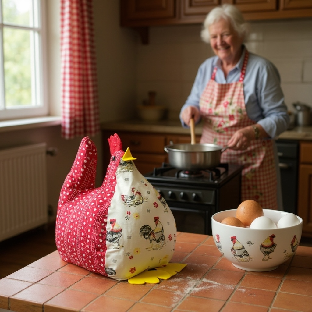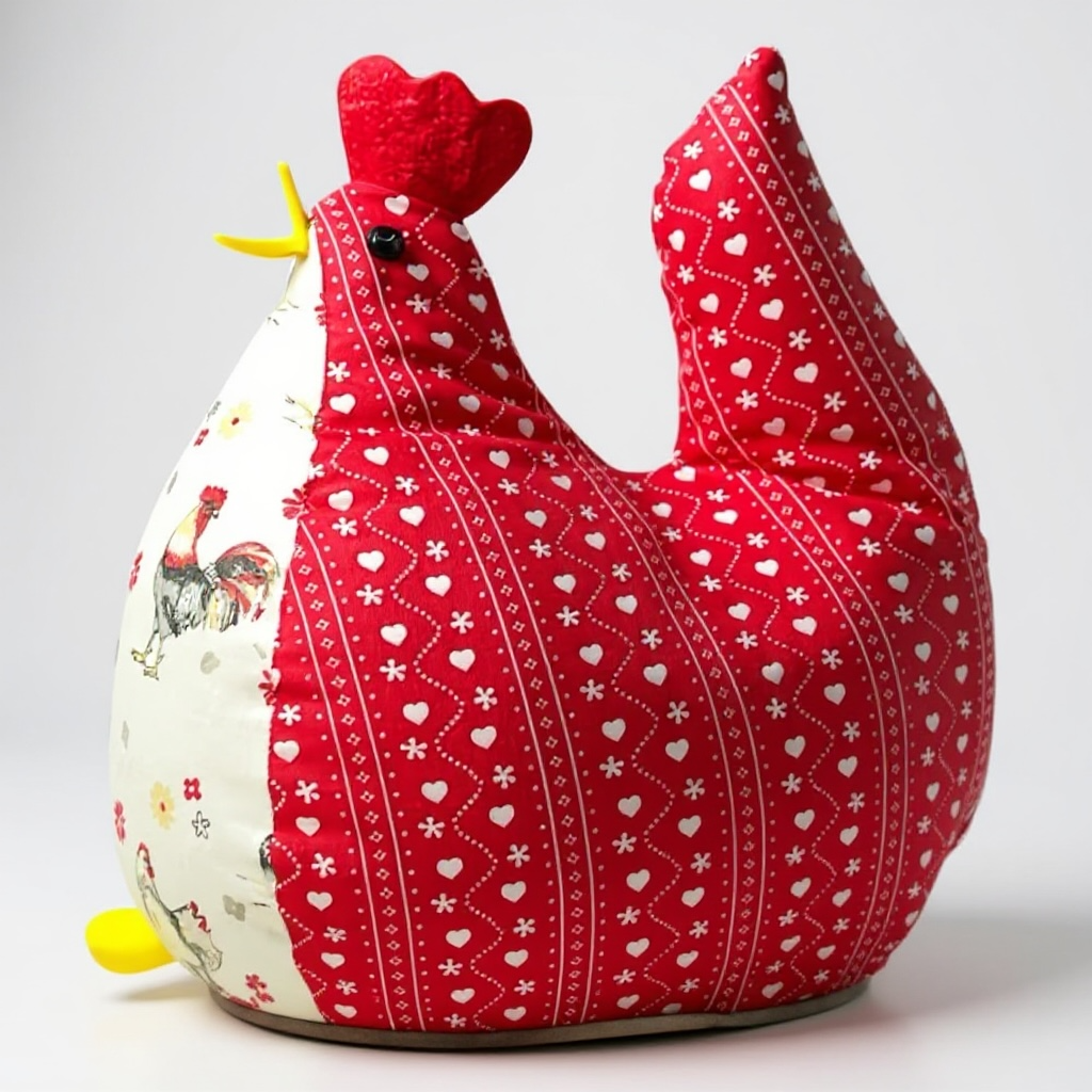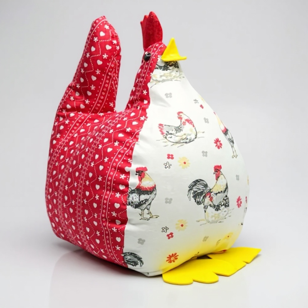 Cette poule en tissu artisanale est parfaite comme cadeau pour les amateurs de décoration, ou comme centre de table unique pour les fêtes pascales. Une décoration qui allie douceur, humour et authenticité.