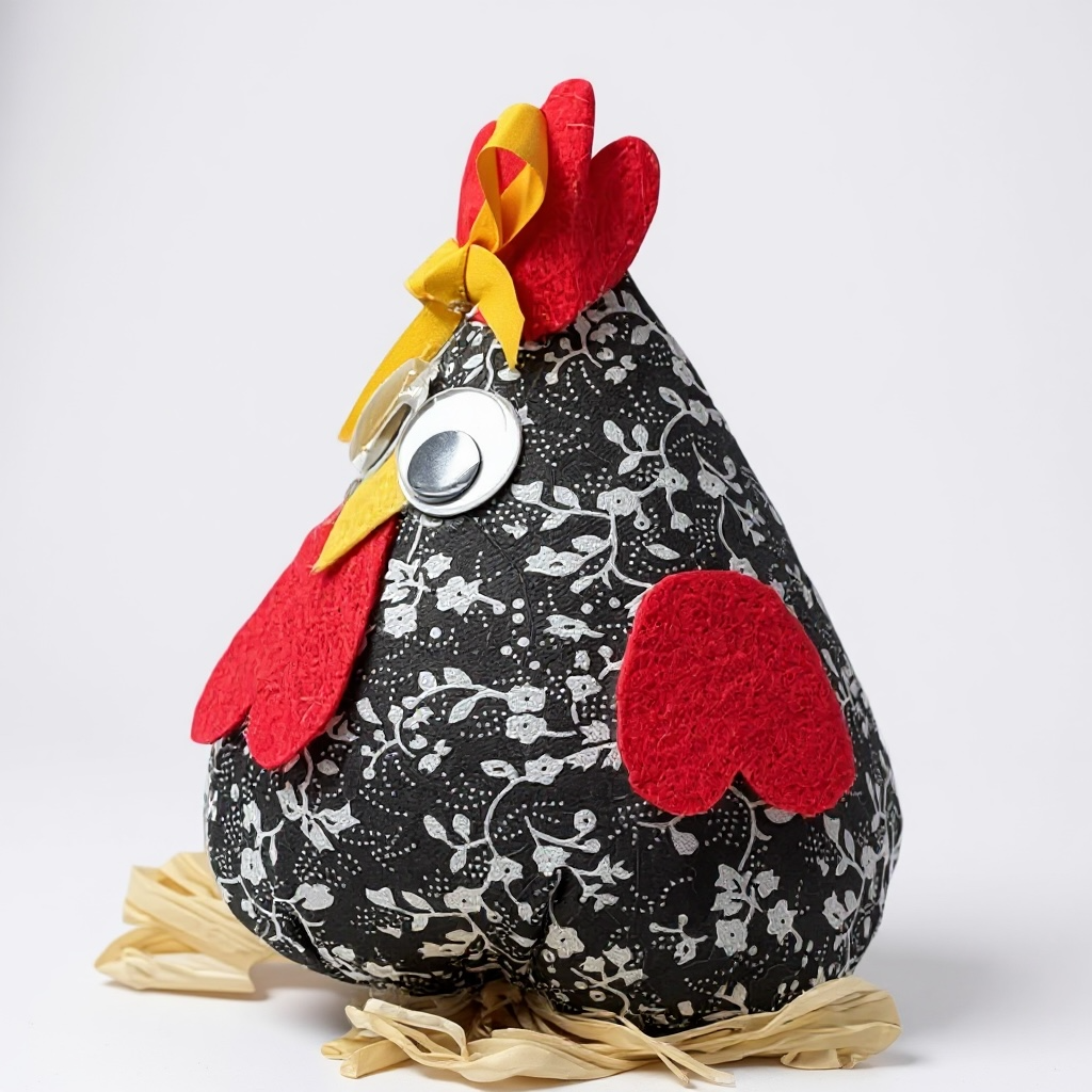 Cette petite poule est idéale pour offrir un cadeau unique et amusant à vos proches. Son design charmant et sa confection artisanale en font un objet de décoration exceptionnel qui ravira petits et grands.