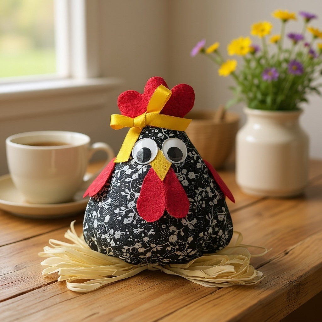 ? Petite Poule Décorative en Tissu – Création Artisanale pour Pâques
