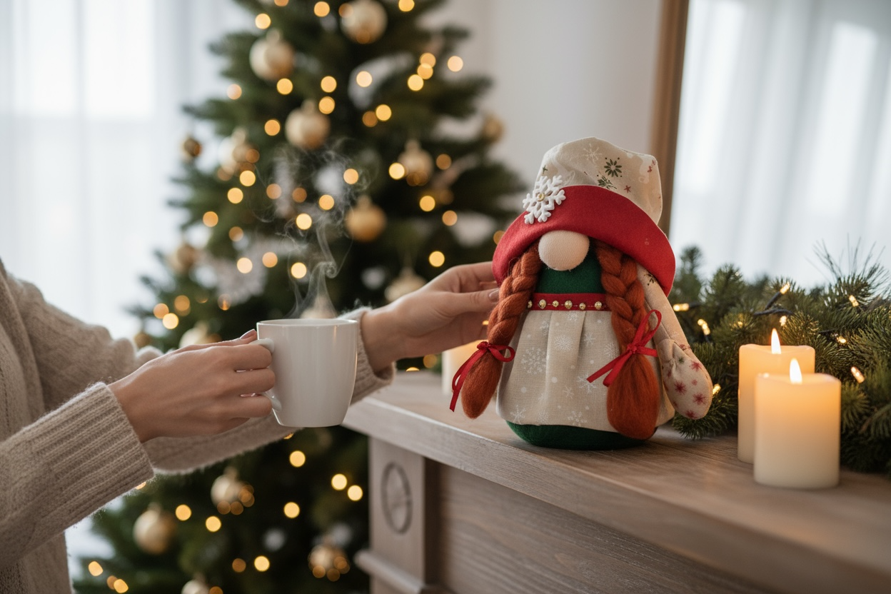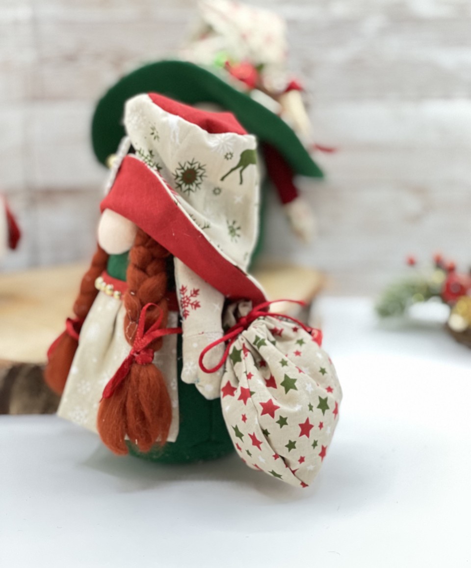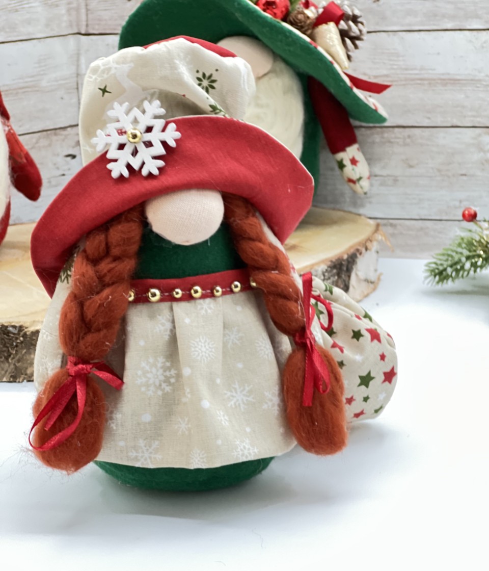 Apportez une touche féerique à votre intérieur avec ce petit gnome de Noël fait main. Cette lutine décorative apportera chaleur et magie à votre maison pour les fêtes. Déposez-la sur une étagère, près du sapin ou sur une table pour égayer chaque coin de votre maison.