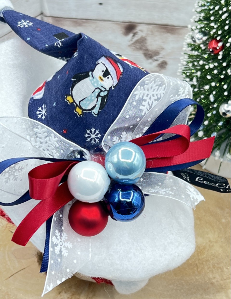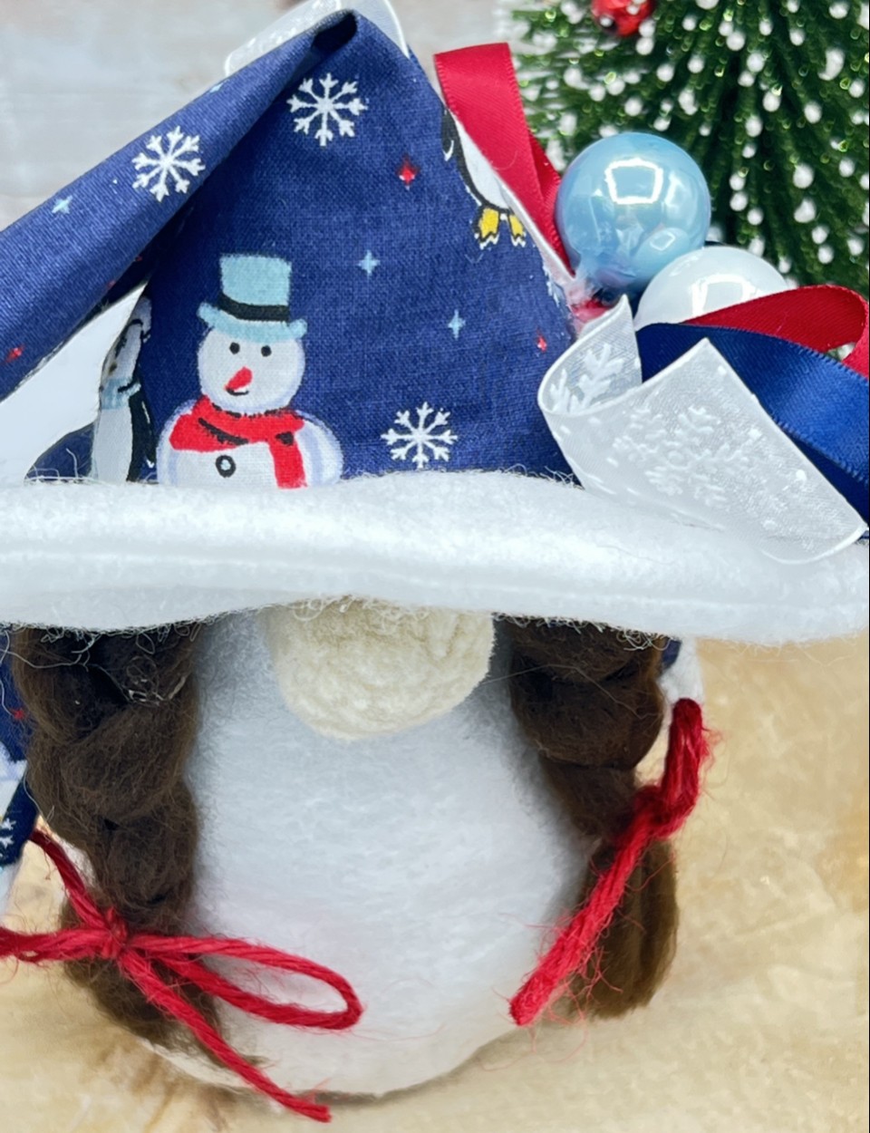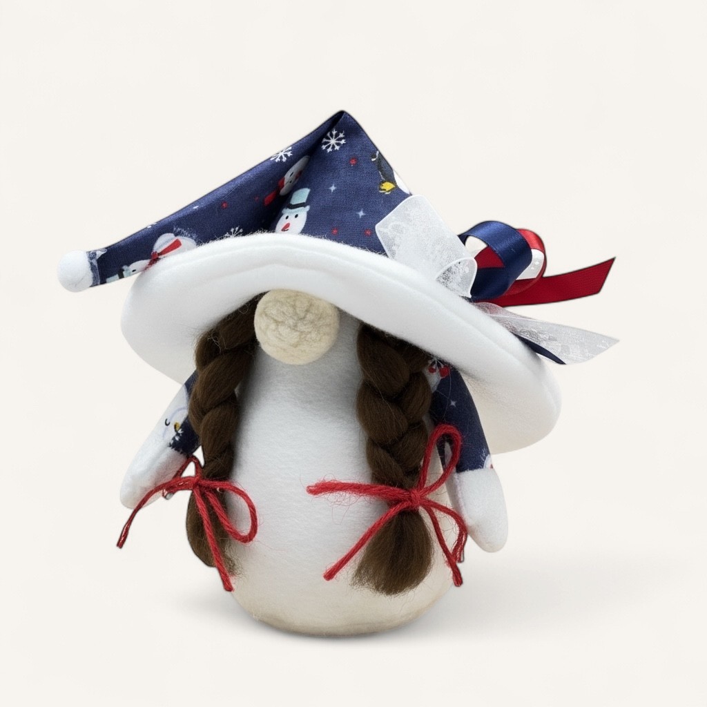 Ajoutez une note féerique à votre maison et faites entrer la magie de Noël avec ce gnome décoratif fait main blanc et bleu.