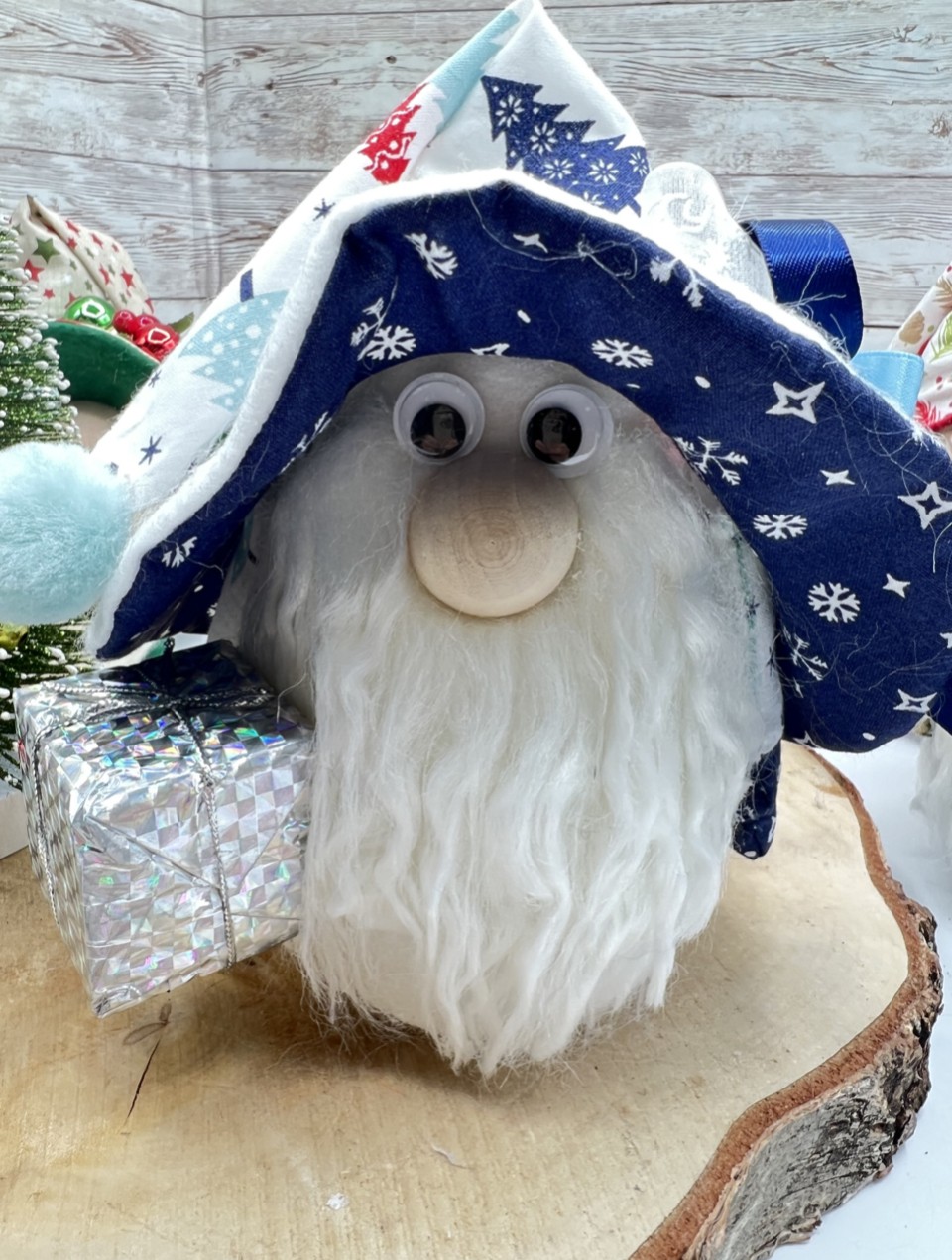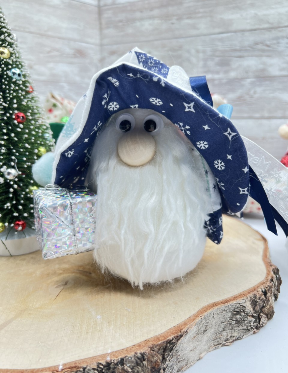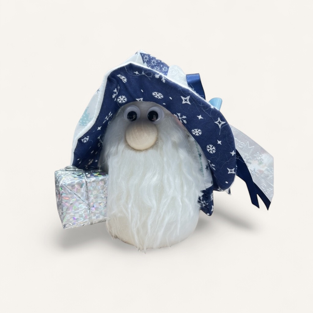 Apportez une touche féerique et chaleureuse à vos fêtes avec ce gnome de Noël artisanal, inspiré de l’univers scandinave. Réalisé à la main dans des tons doux blanc et bleu, ce lutin unique en son genre sublimera votre décoration de Noël et créera une ambiance magique dans votre maison.