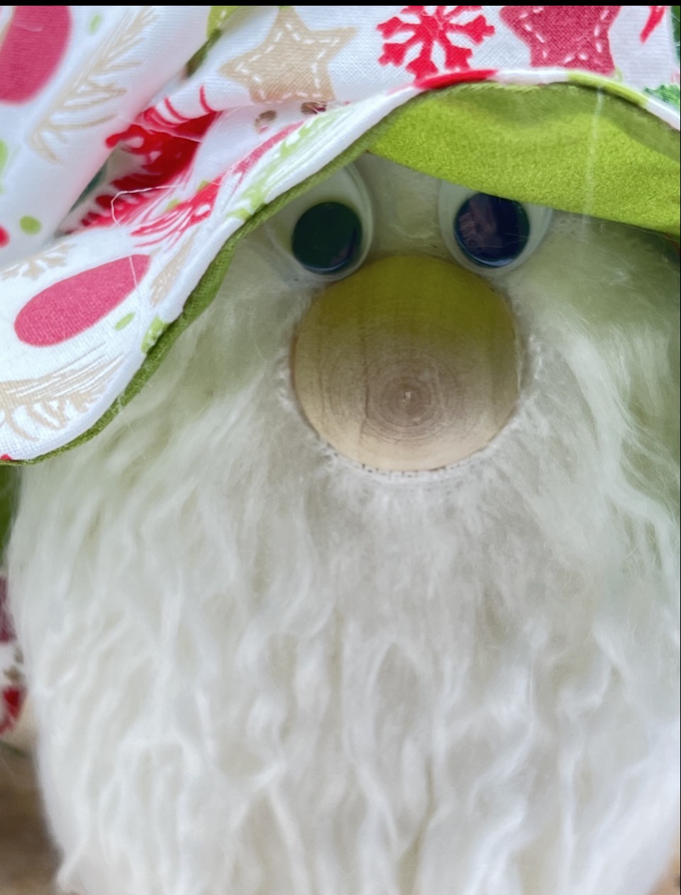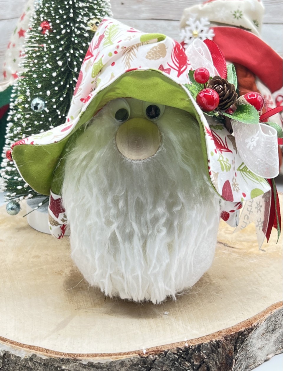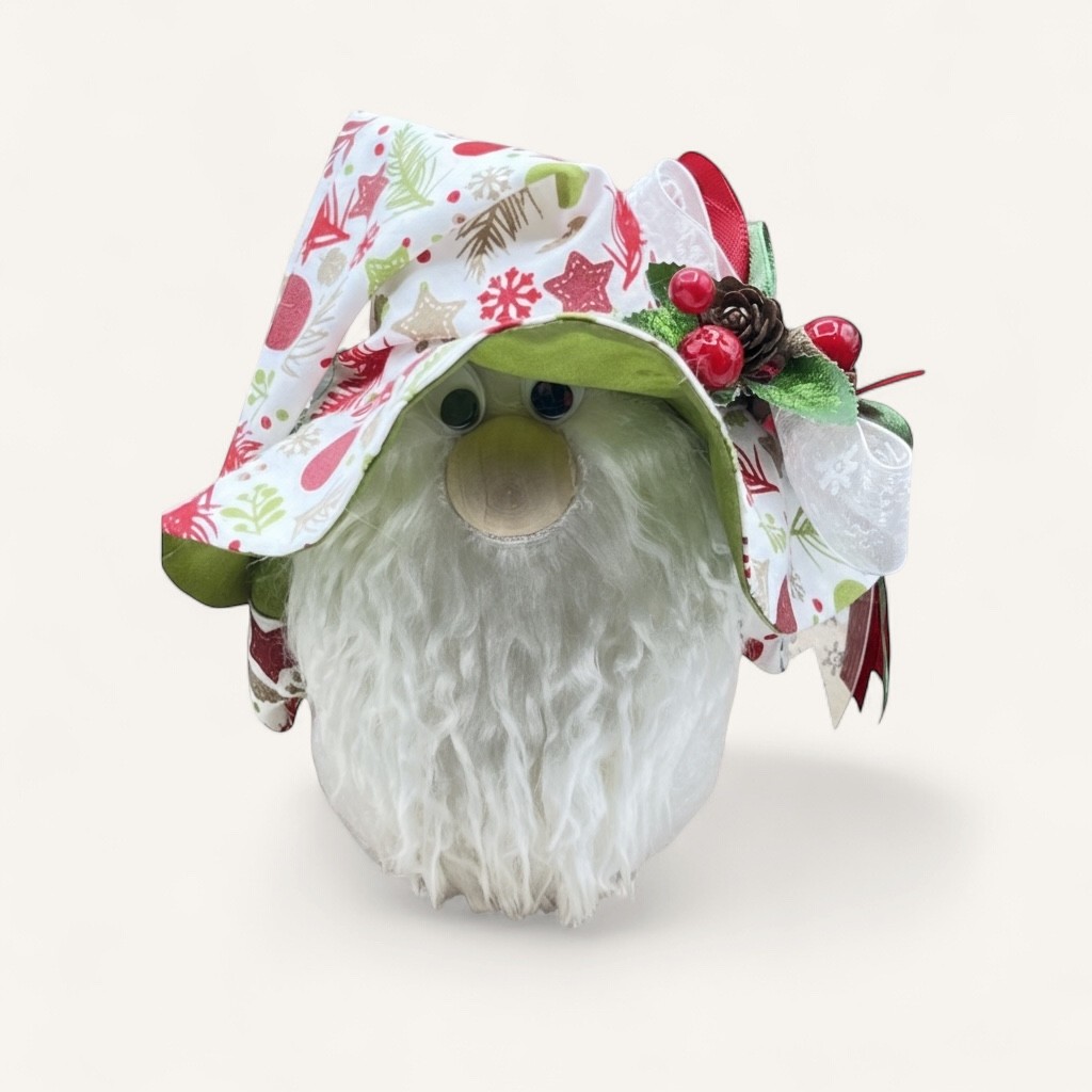 Voici un petit gnome de Noël décoratif, réalisé entièrement à la main, qui apportera immédiatement une ambiance chaleureuse et festive à votre intérieur. Sa tenue soignée aux tons blanc et vert, agrémentée d’un grelot et d’une décoration sur son chapeau, en fait une pièce unique qui illuminera vos fêtes.