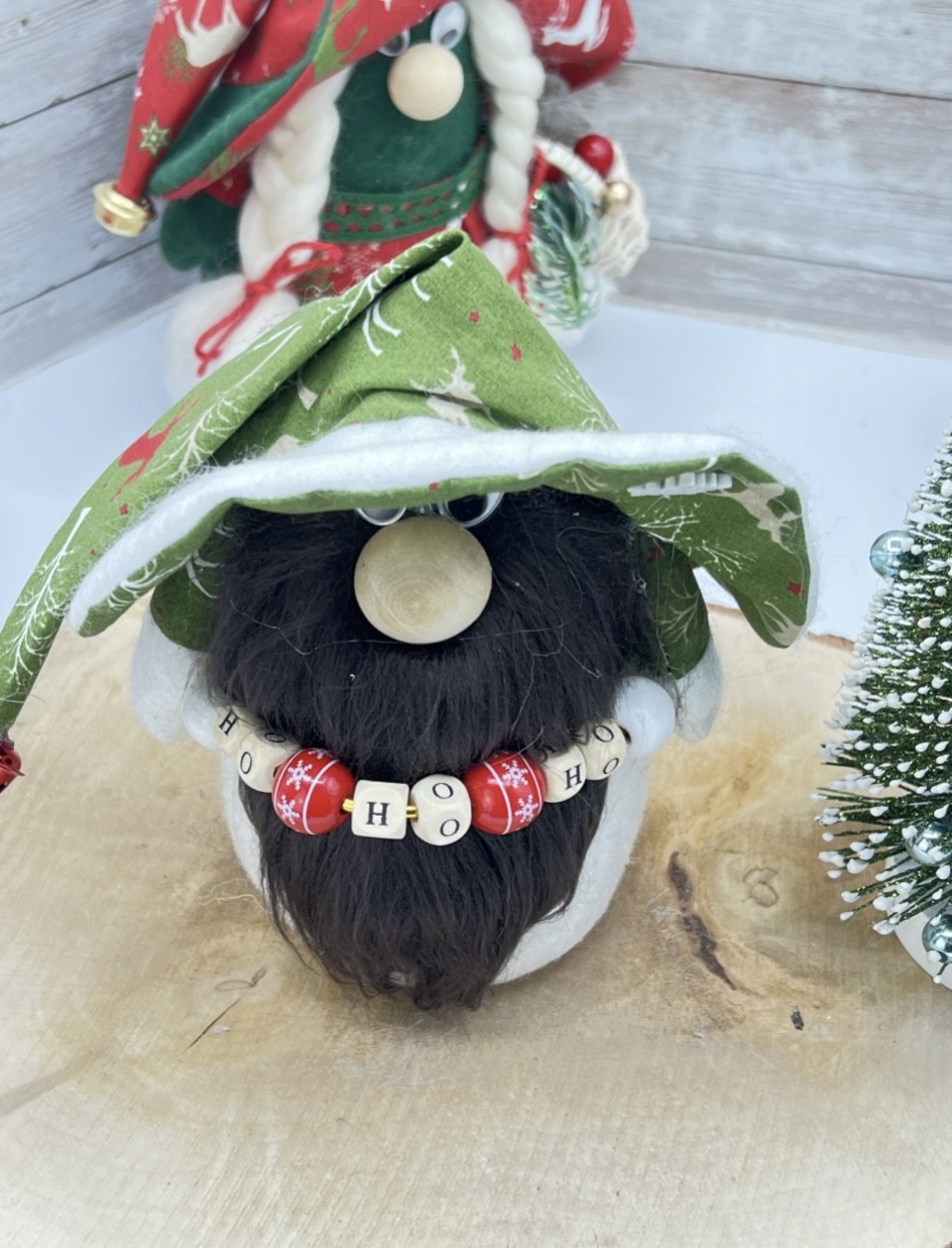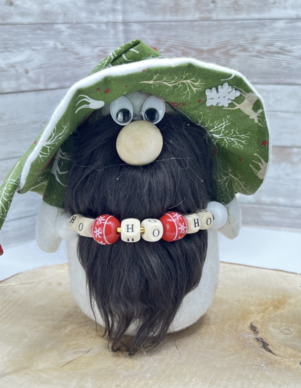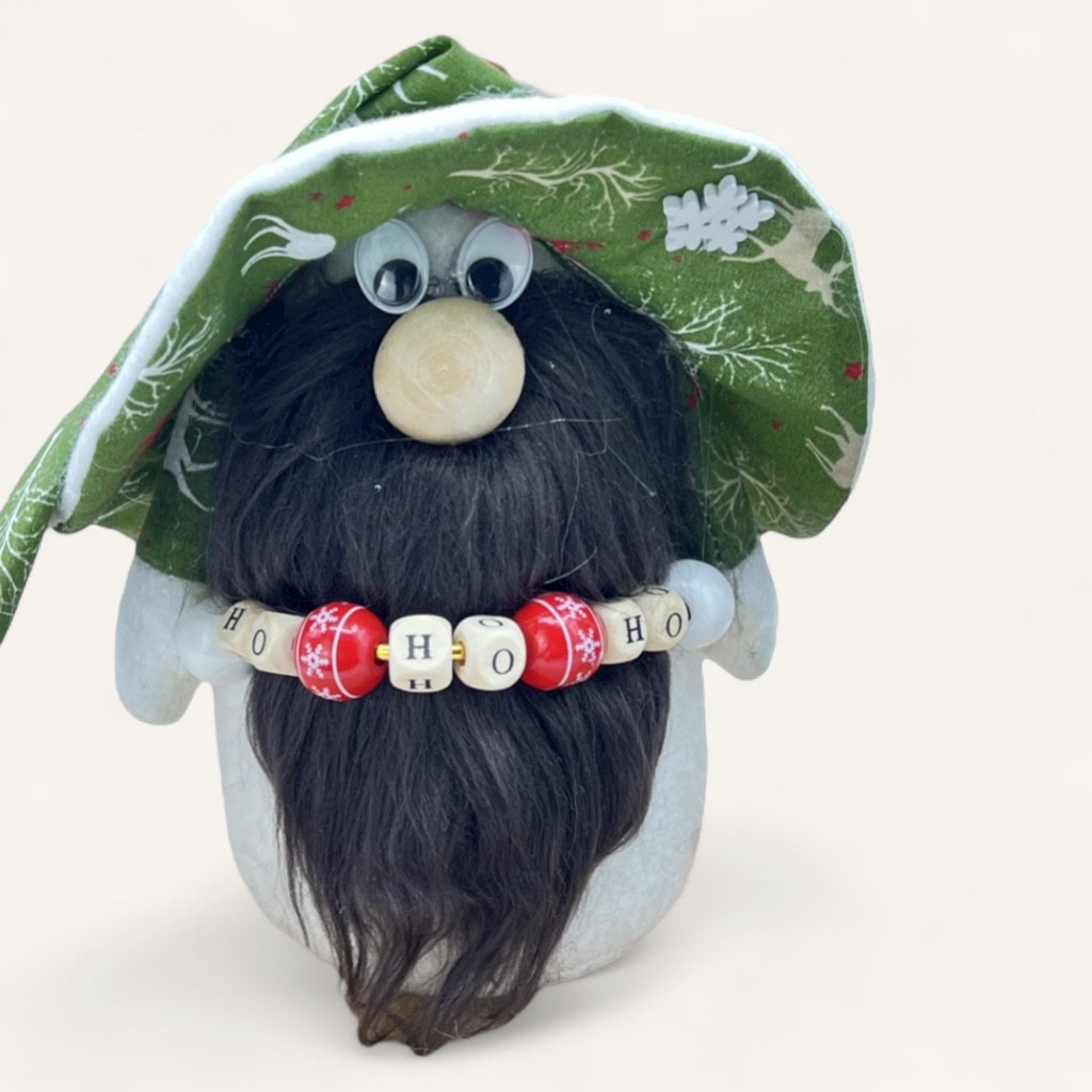 •Détails authentiques : chapeau décoré et inscription “HoHo Ho” en perles de bois.