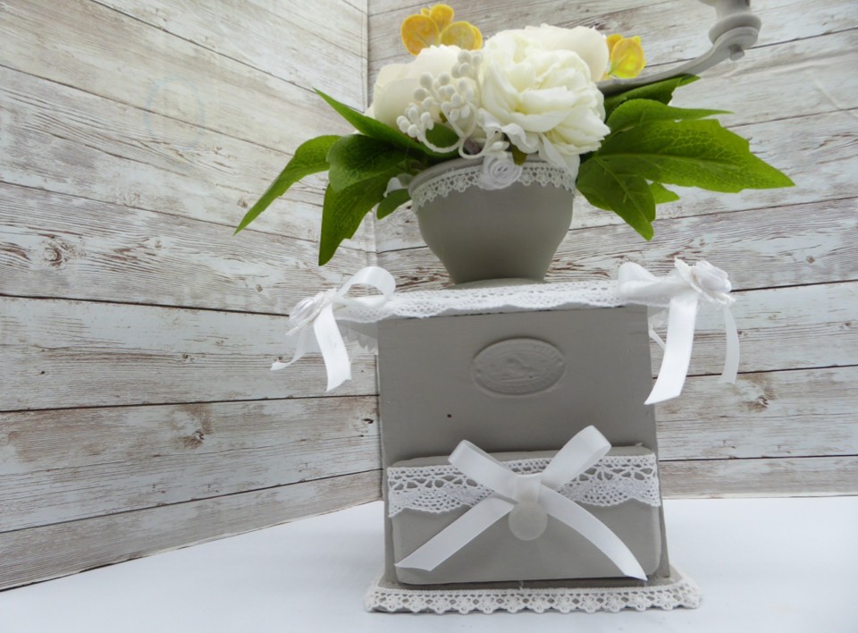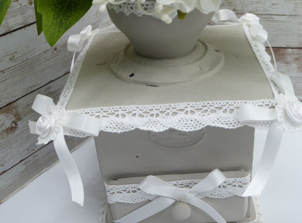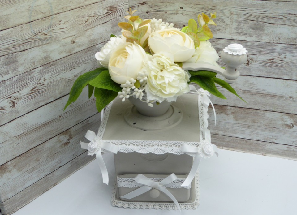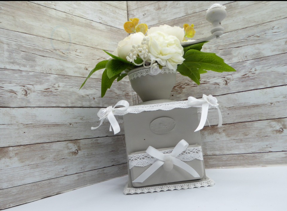 Apportez une touche d’élégance vintage à votre intérieur avec ce magnifique moulin à café ancien relooké dans un esprit shabby chic.