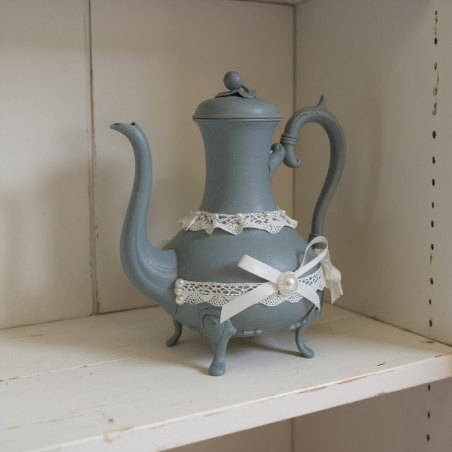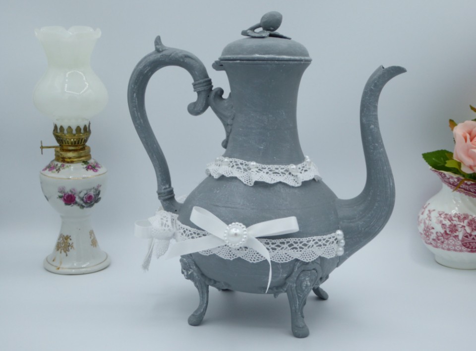 Le style shabby chic allie le charme de l’ancien à la douceur du romantisme. Cette cafetière décorative apportera une ambiance chaleureuse, poétique et élégante à votre salon, cuisine ou chambre. Chaque détail – la dentelle, les rubans, les teintes pastel – contribue à créer une atmosphère douce et raffinée.