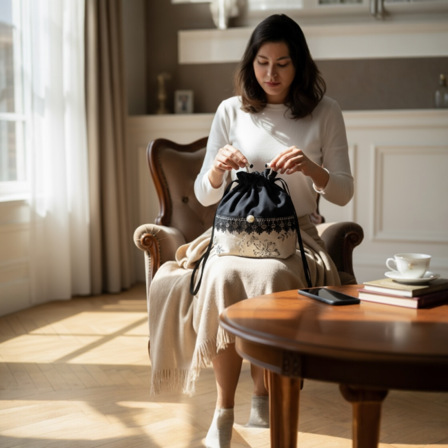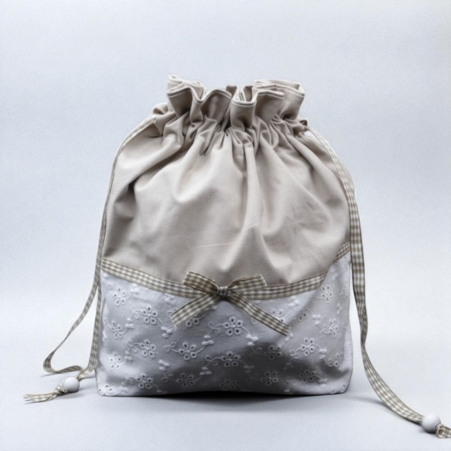 Commandez dès aujourd’hui votre sac pochon dentelle noire et lin