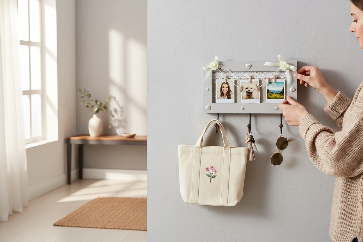 Porte torchon ou porte-clés mural "Petits cœurs" – Modèle ancien unique