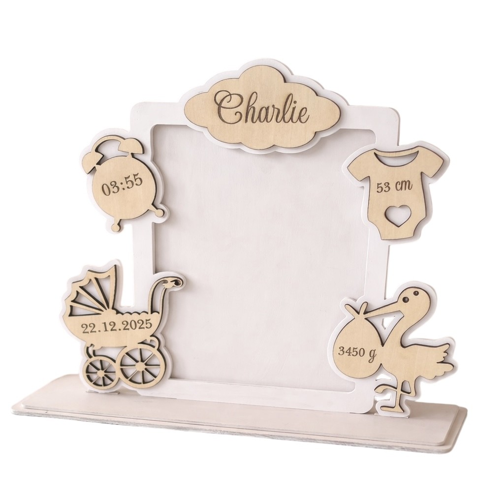 Célébrez l’arrivée d’un bébé avec un cadre naissance personnalisé en bois, un souvenir précieux qui accompagnera l’enfant toute sa vie. Ce cadre délicat met en valeur les informations importantes de la naissance : prénom, date, poids, taille et heure de naissance.