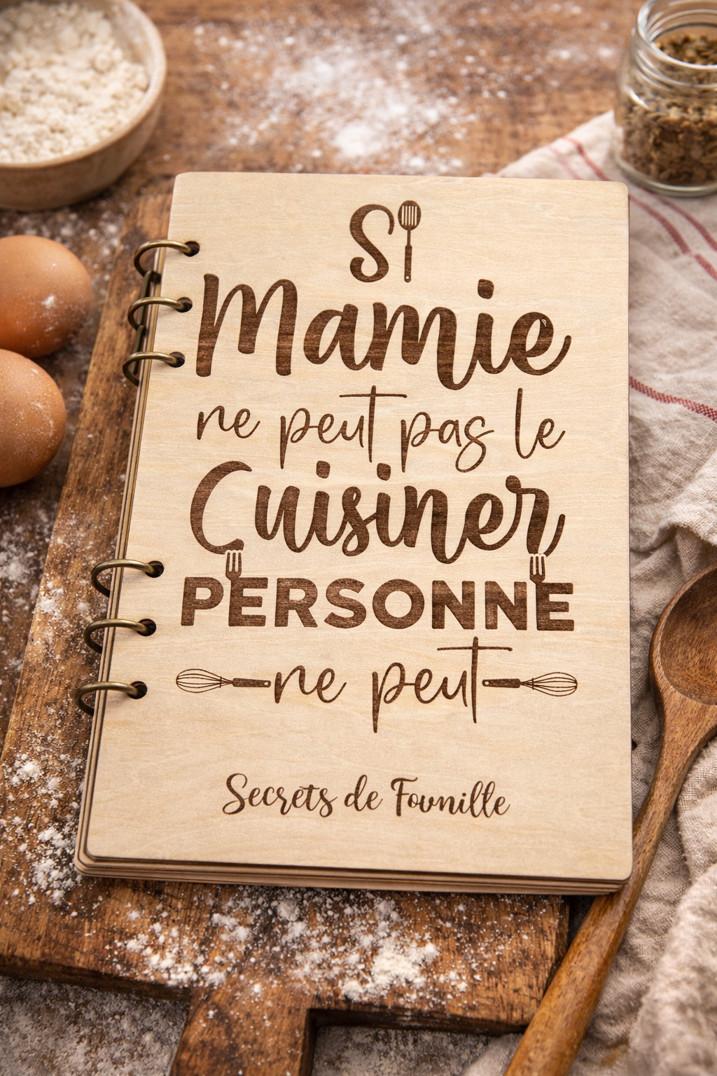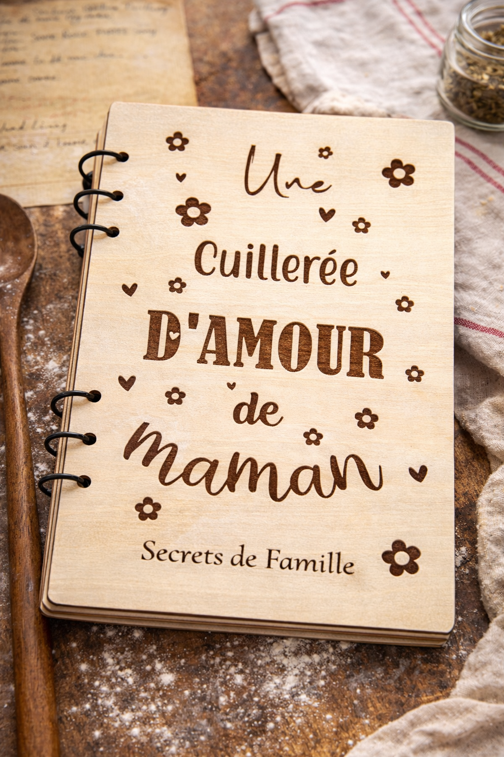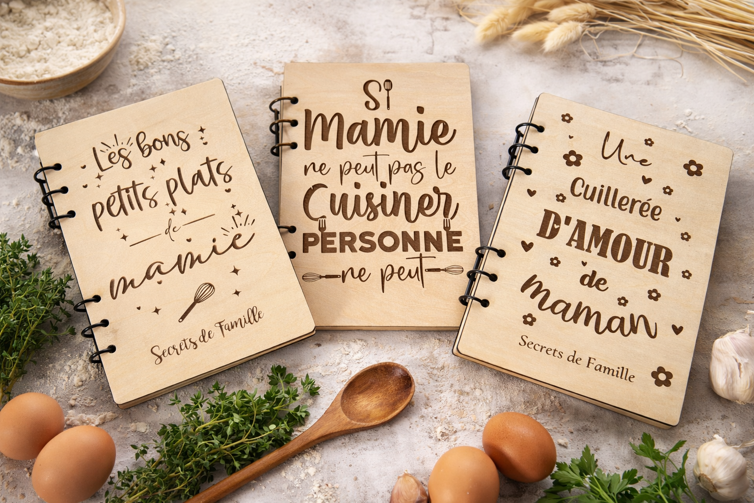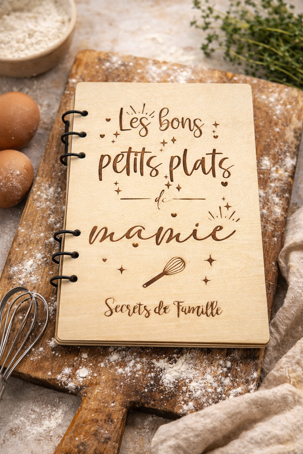 Offrez un cadeau à la fois utile, émotionnel et durable avec ce livre de recettes en bois gravé.