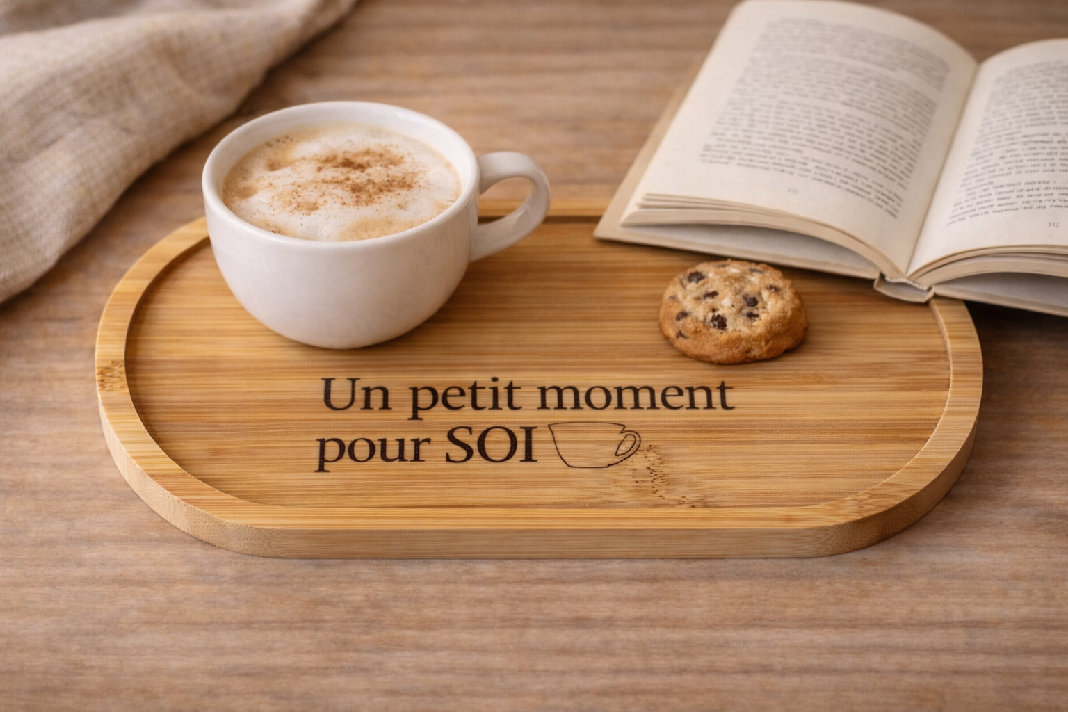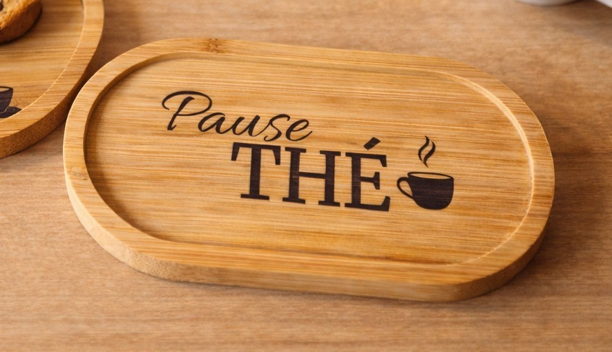 Apportez une touche chaleureuse à vos pauses café ou thé avec ce petit plateau en bambou gravé. À la fois pratique et décoratif, il est idéal pour accueillir une tasse, un biscuit ou simplement créer un petit moment pour soi.