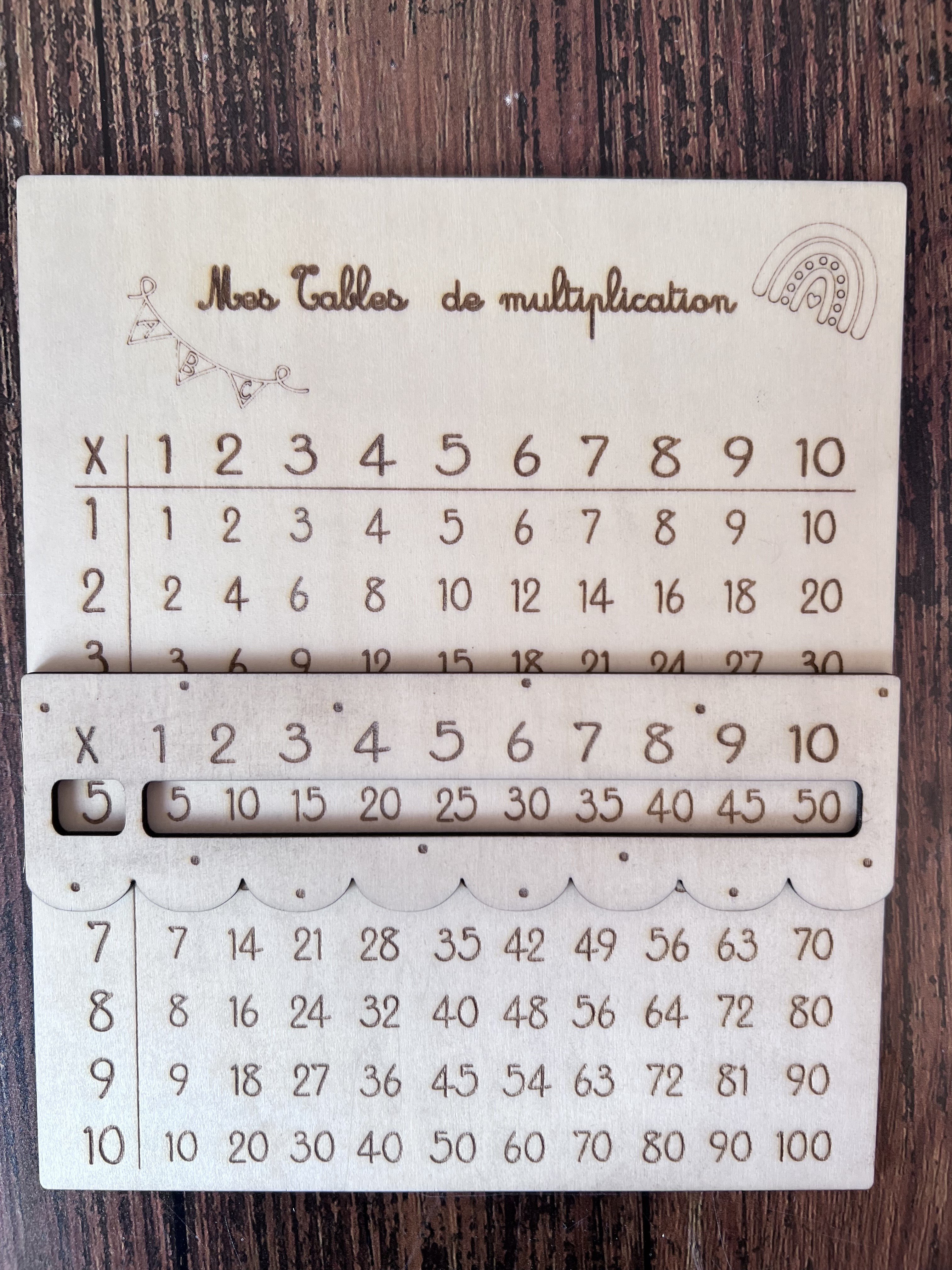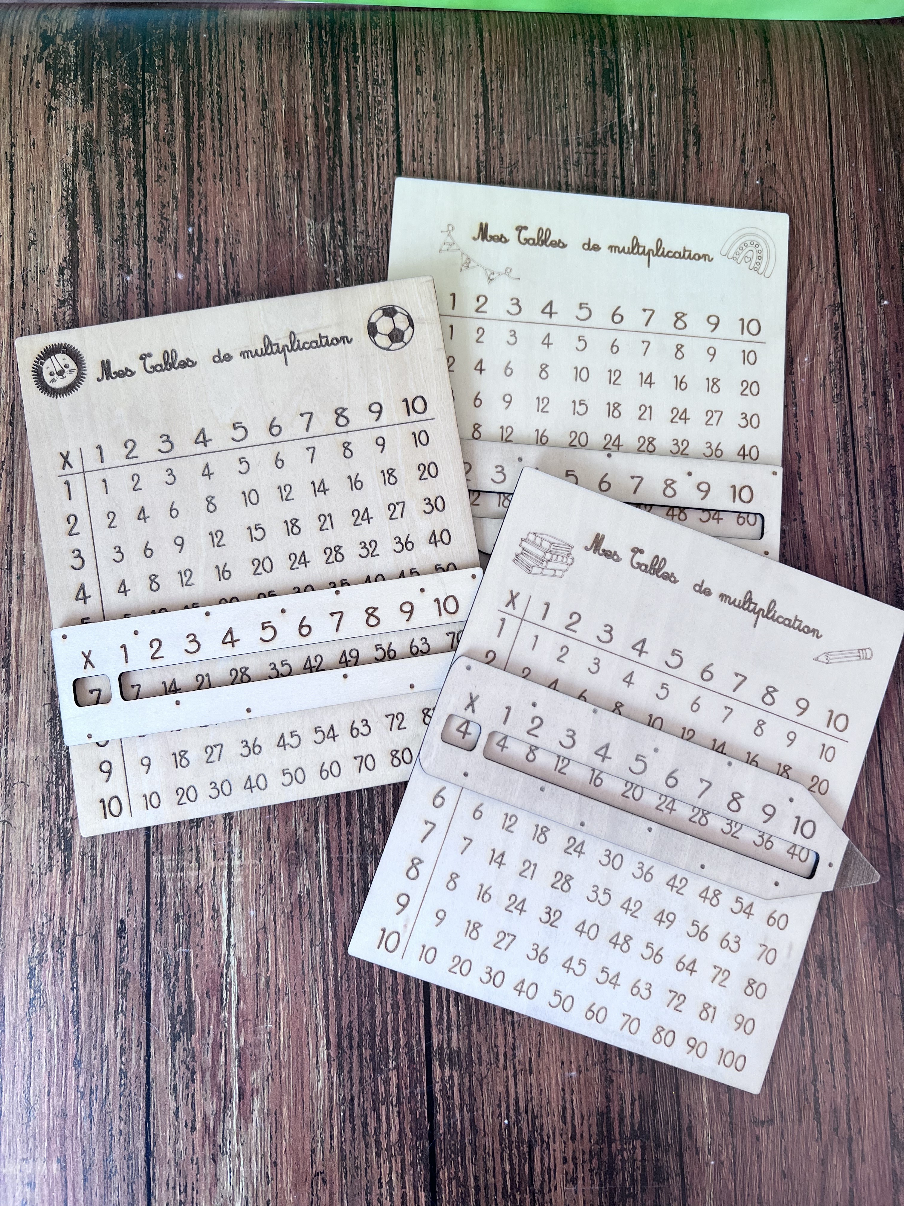 Offrez à votre enfant une manière ludique et durable d'apprendre les tables de multiplication. Nos tables sont fabriquées à partir de bois découpé au laser, pour un rendu soigné, solide et esthétique. Parfait pour stimuler la mémoire visuelle et tactile !