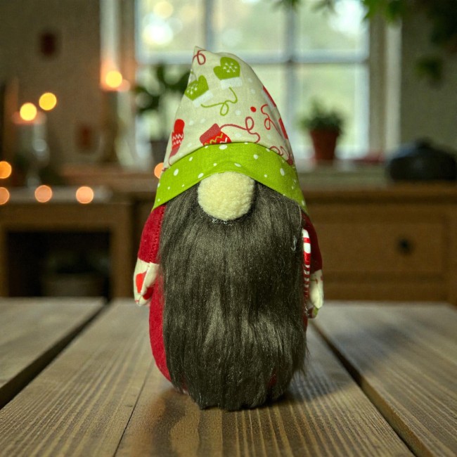 Gnome de Noël fait main – Lutine décorative verte et rouge M18Figurines De Noël Artisanales