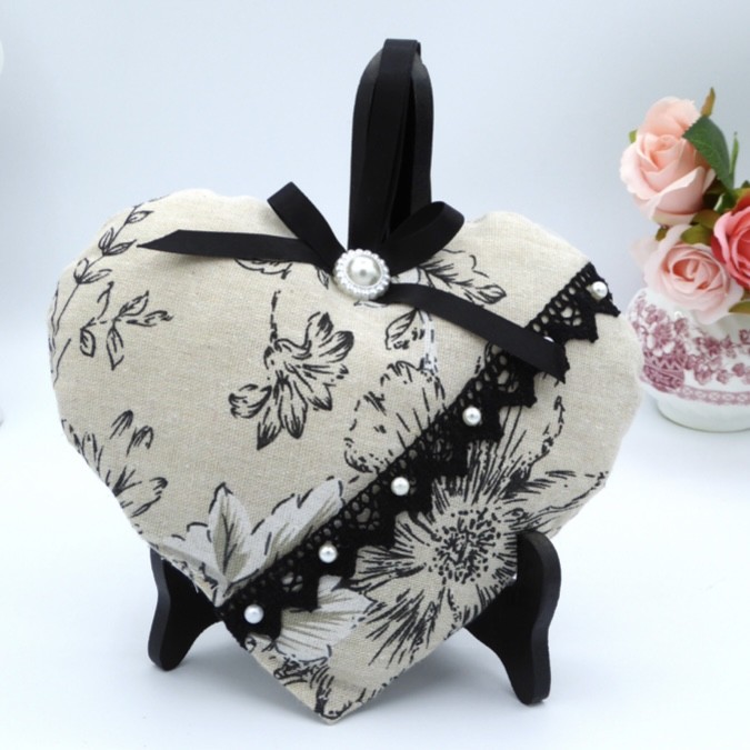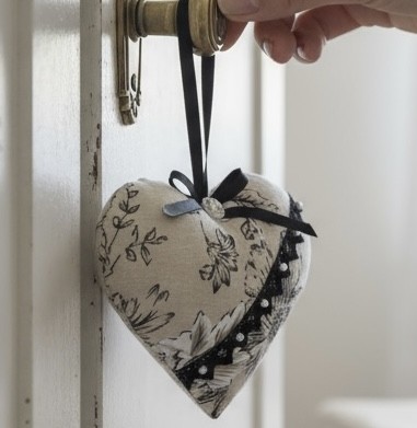 Il est garni de ouate pour un aspect doux et moelleux. Grâce à son lien en satin noir, vous pourrez l’accrocher facilement à une poignée, une patère ou l’utiliser en ornement mural.