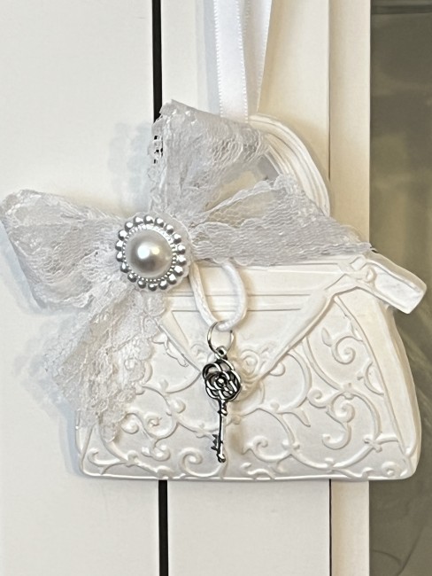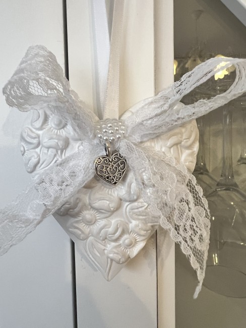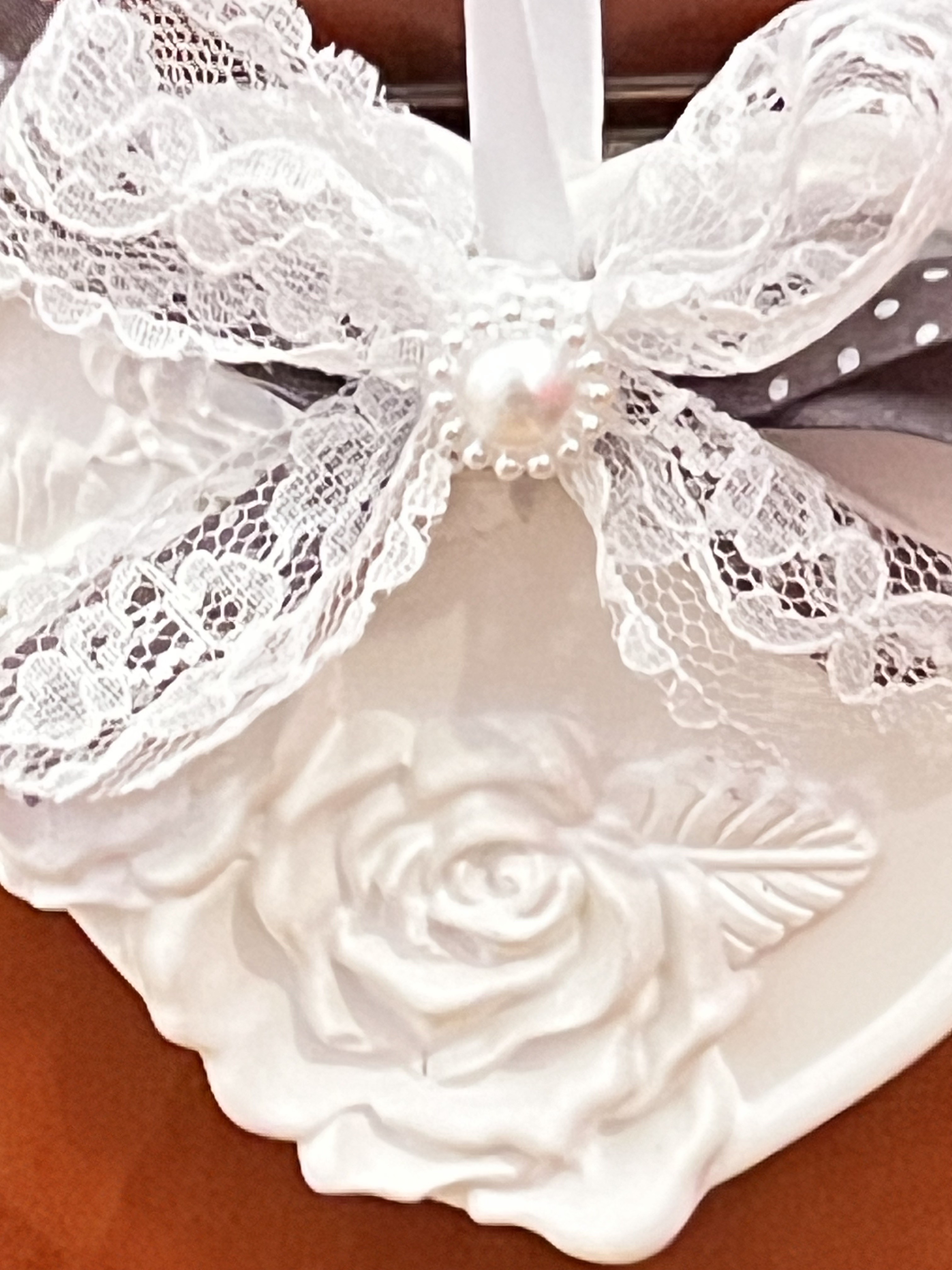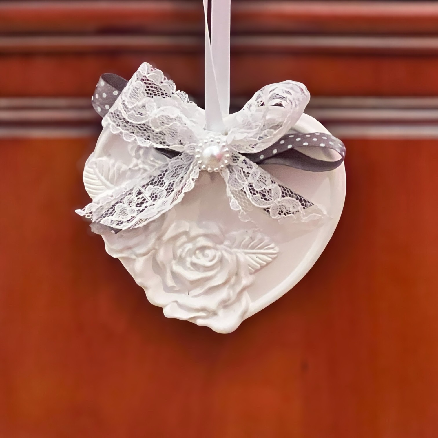 Chaque diffuseur est coulé, décoré et assemblé à la main, dans un esprit shabby chic romantique. Les breloques et décorations textiles peuvent varier légèrement, rendant chaque pièce unique.