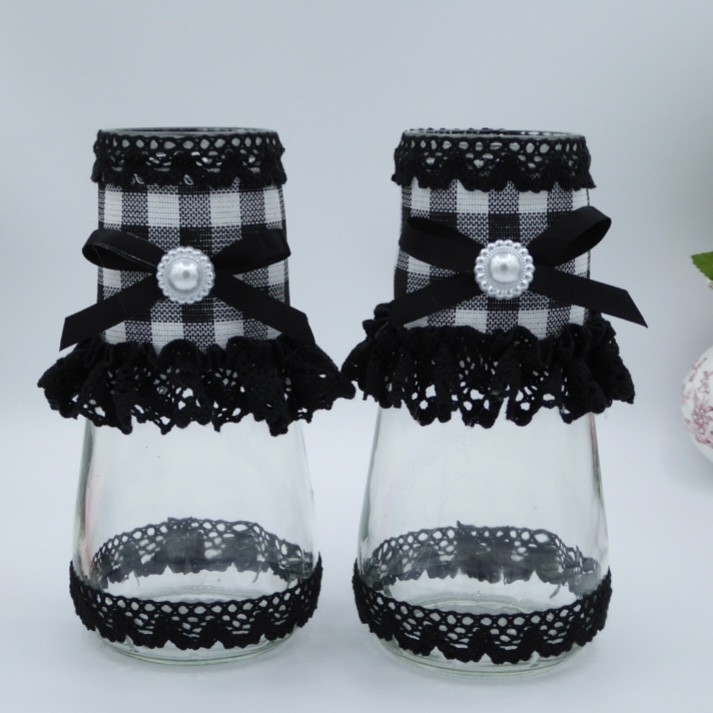 - Finitions : dentelle noire froncée, nœuds ruban vichy noir et blanc