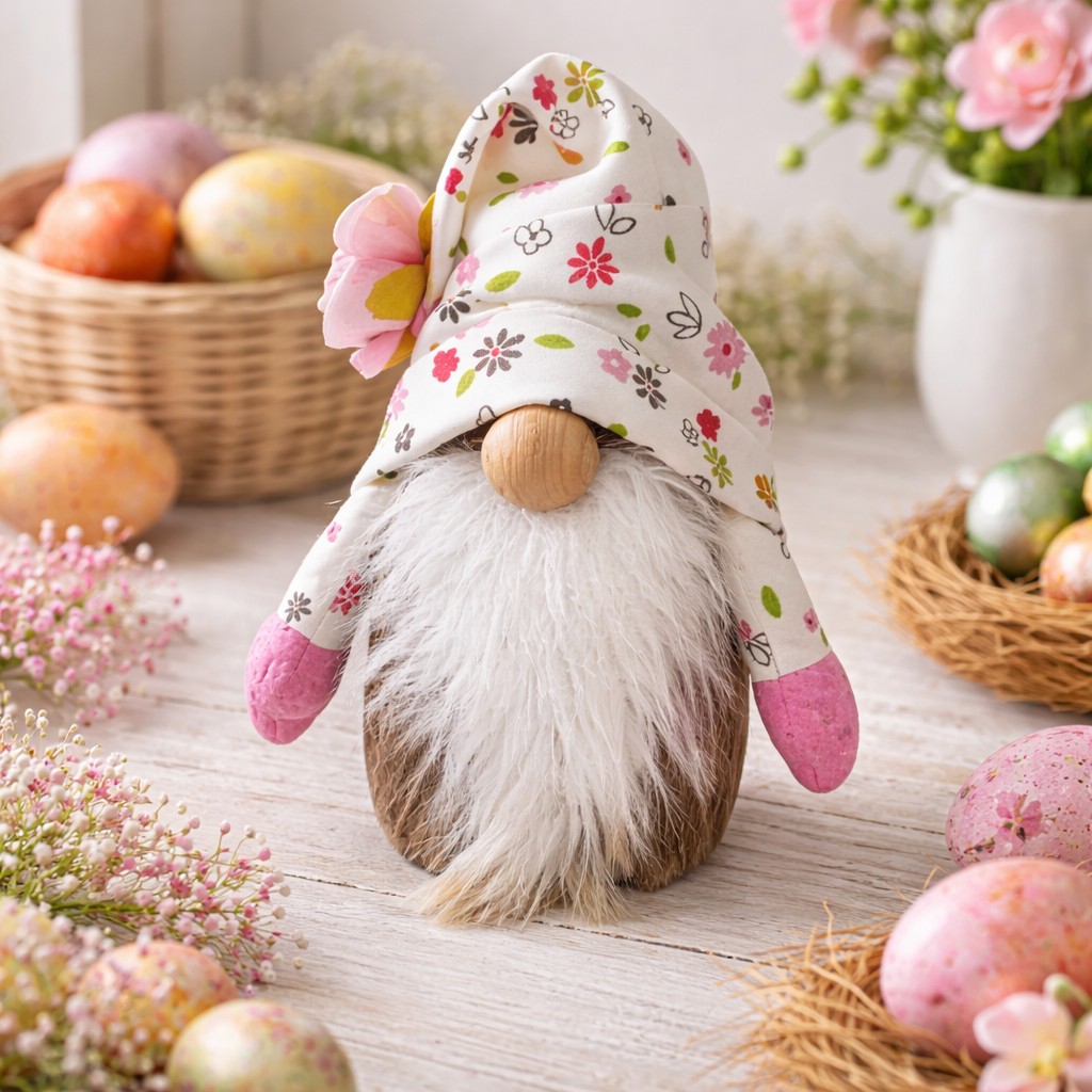 Inspiré de la décoration scandinave et bohème, ce petit gnome artisanal est idéal pour Pâques, le printemps ou une décoration de table festive.