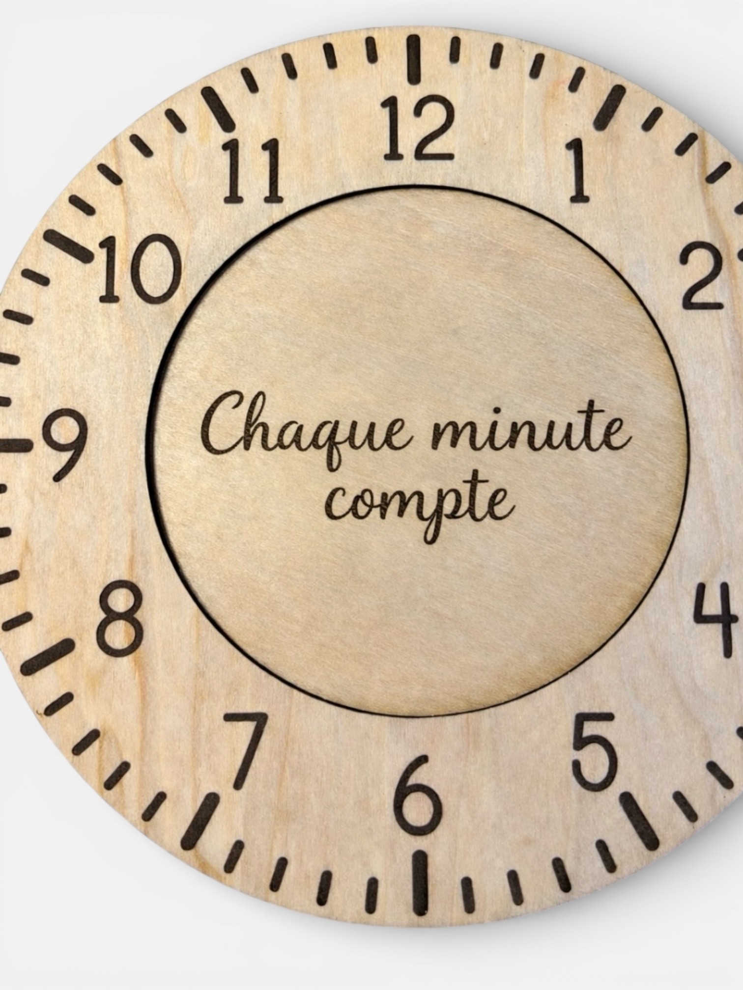 Apprenez à votre enfant à lire l’heure avec douceur, manipulation et autonomie grâce à notre horloge éducative en bois naturel, conçue selon les principes Montessori. Un outil concret, visuel et sensoriel pour comprendre les fractions de l’heure, les minutes, et la durée des activités quotidiennes.
