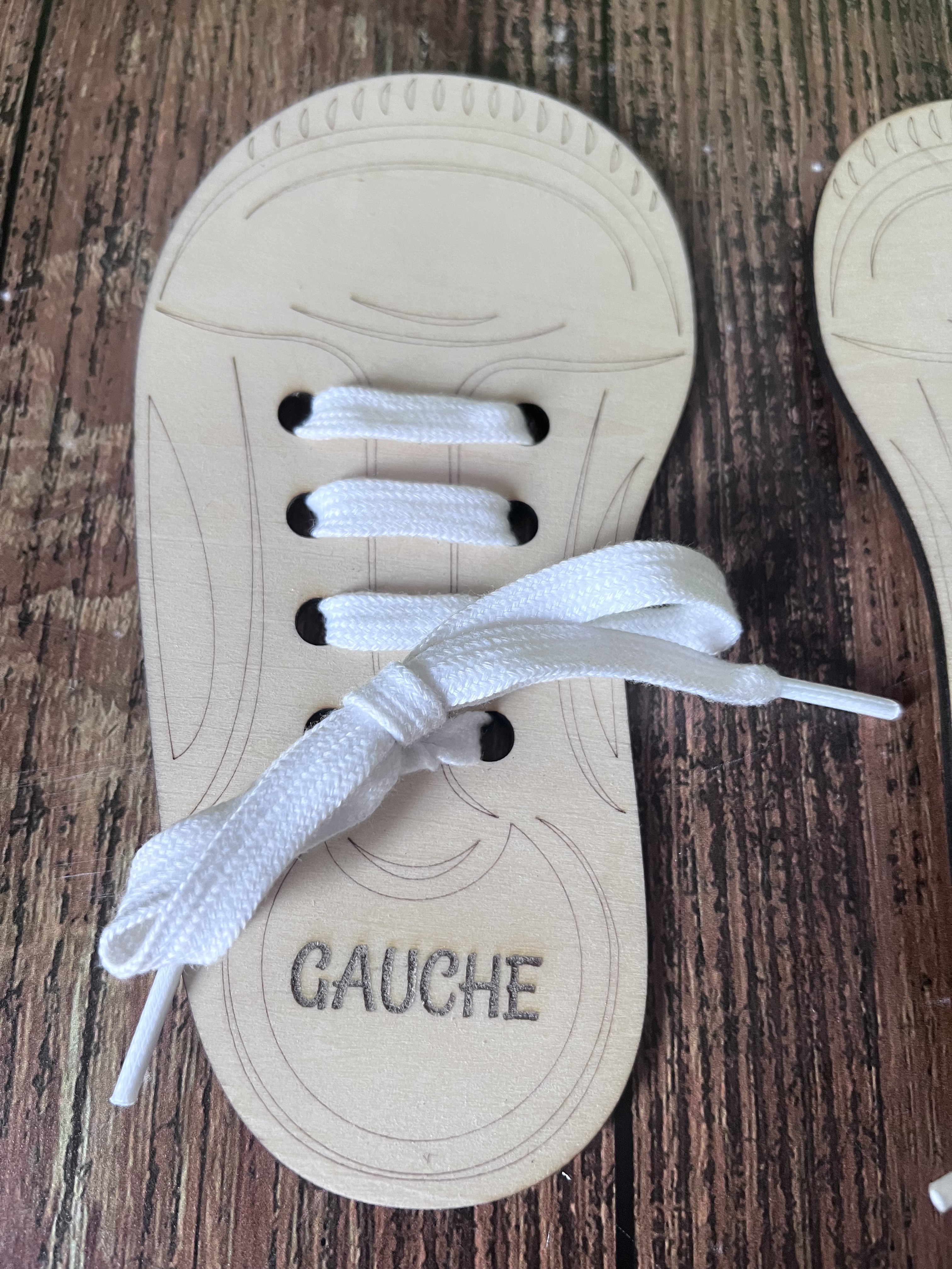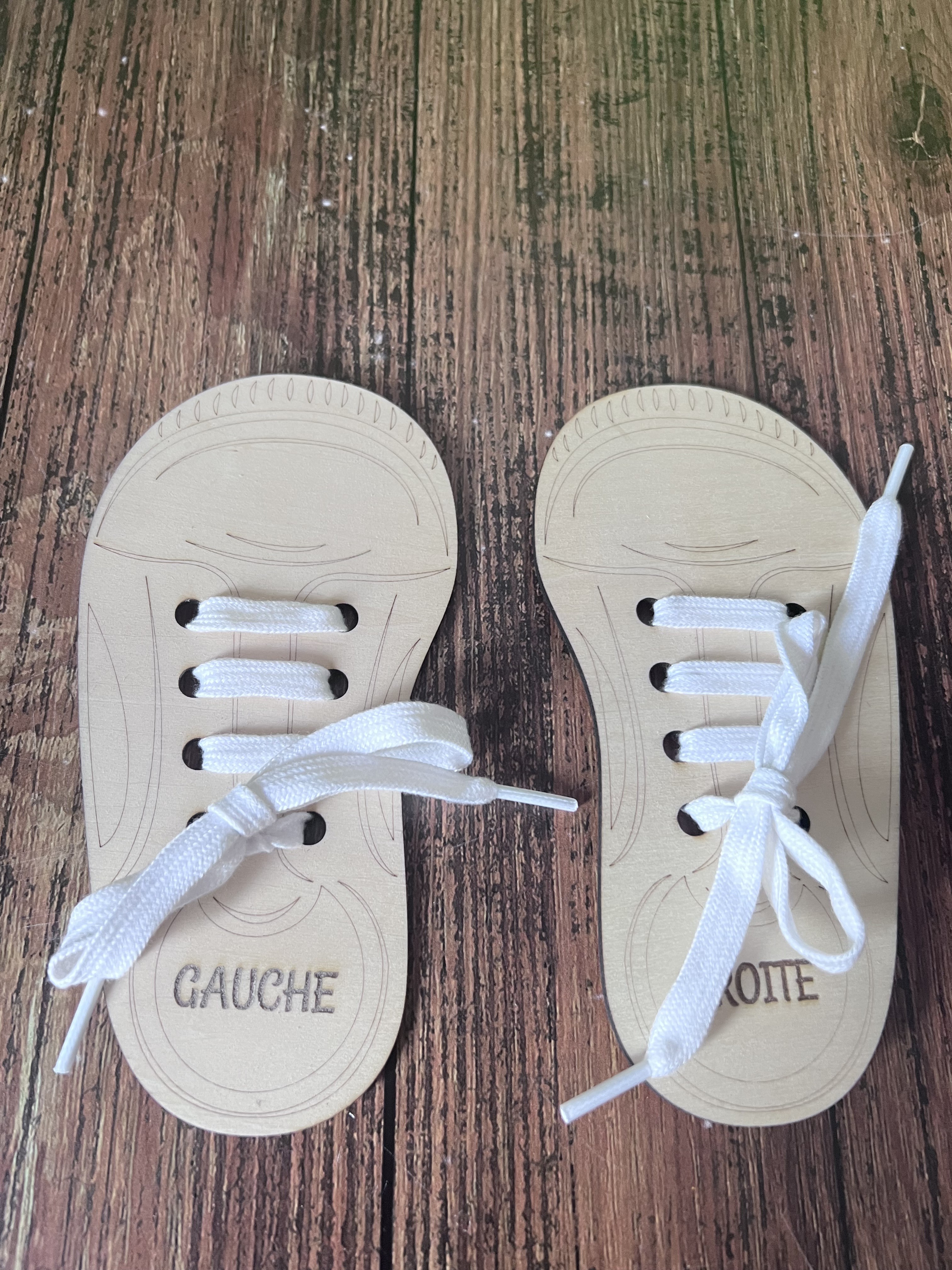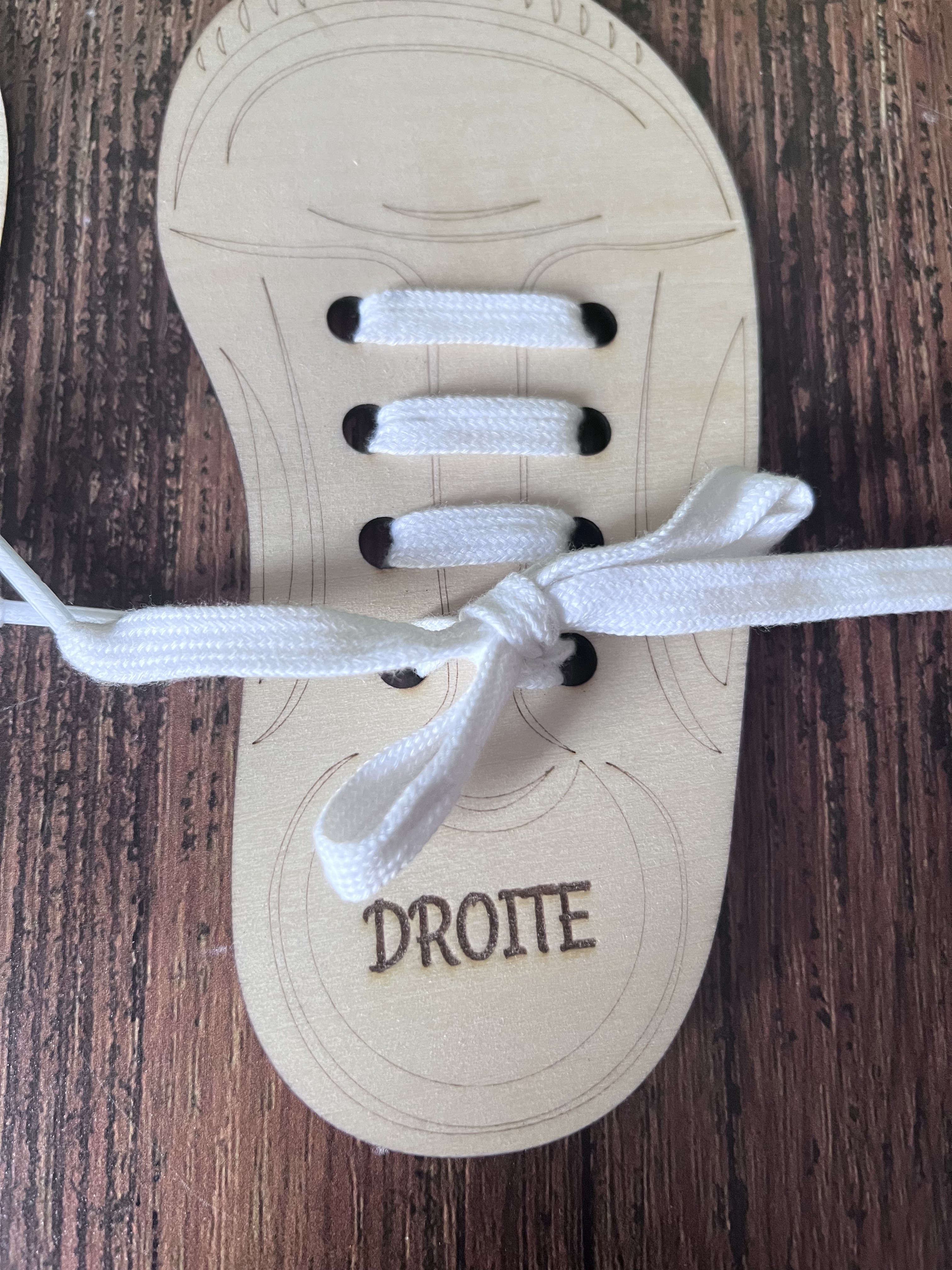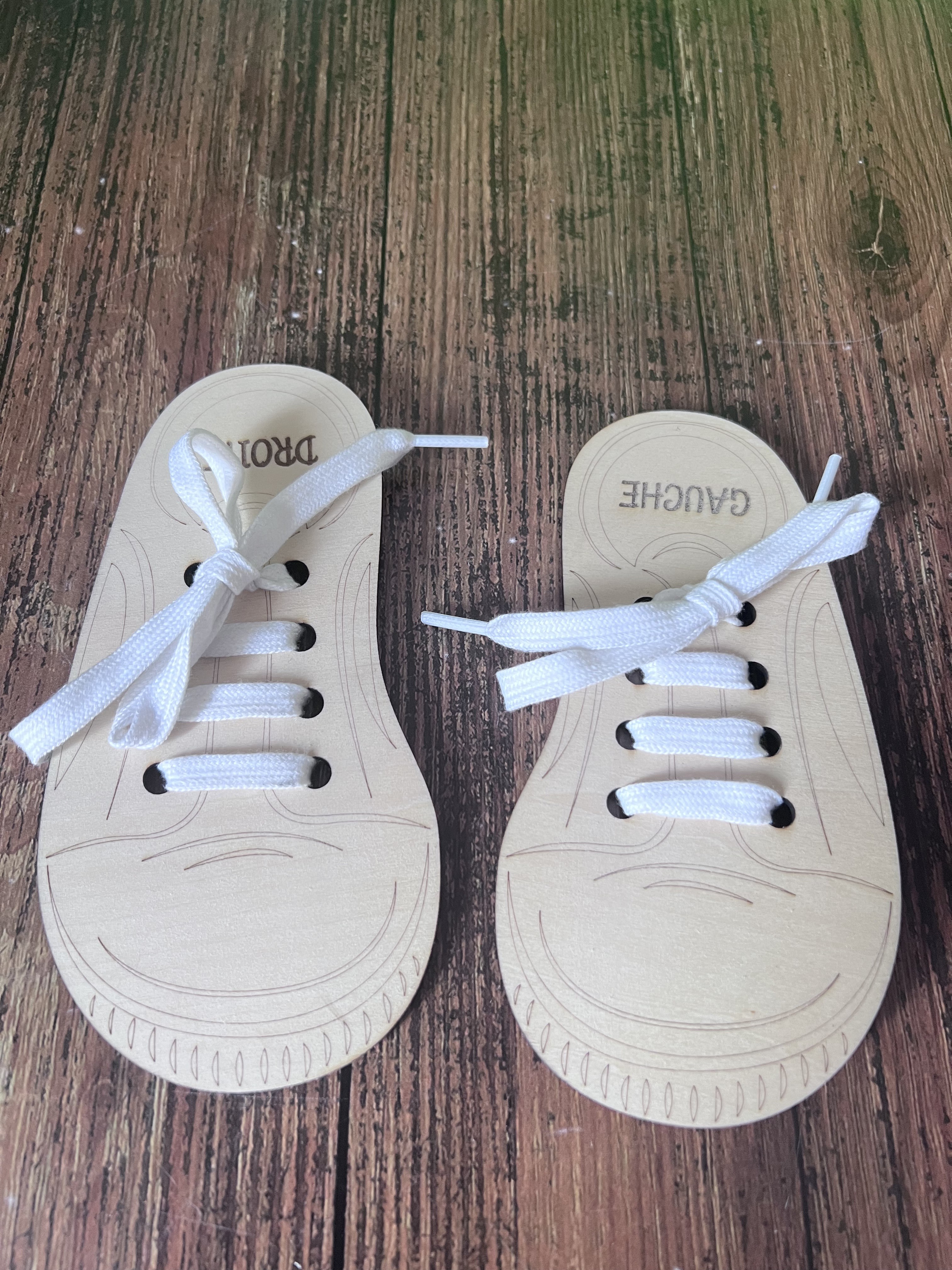 Chaussures en bois éducatives à lacer - Apprentissage ludique des lacets