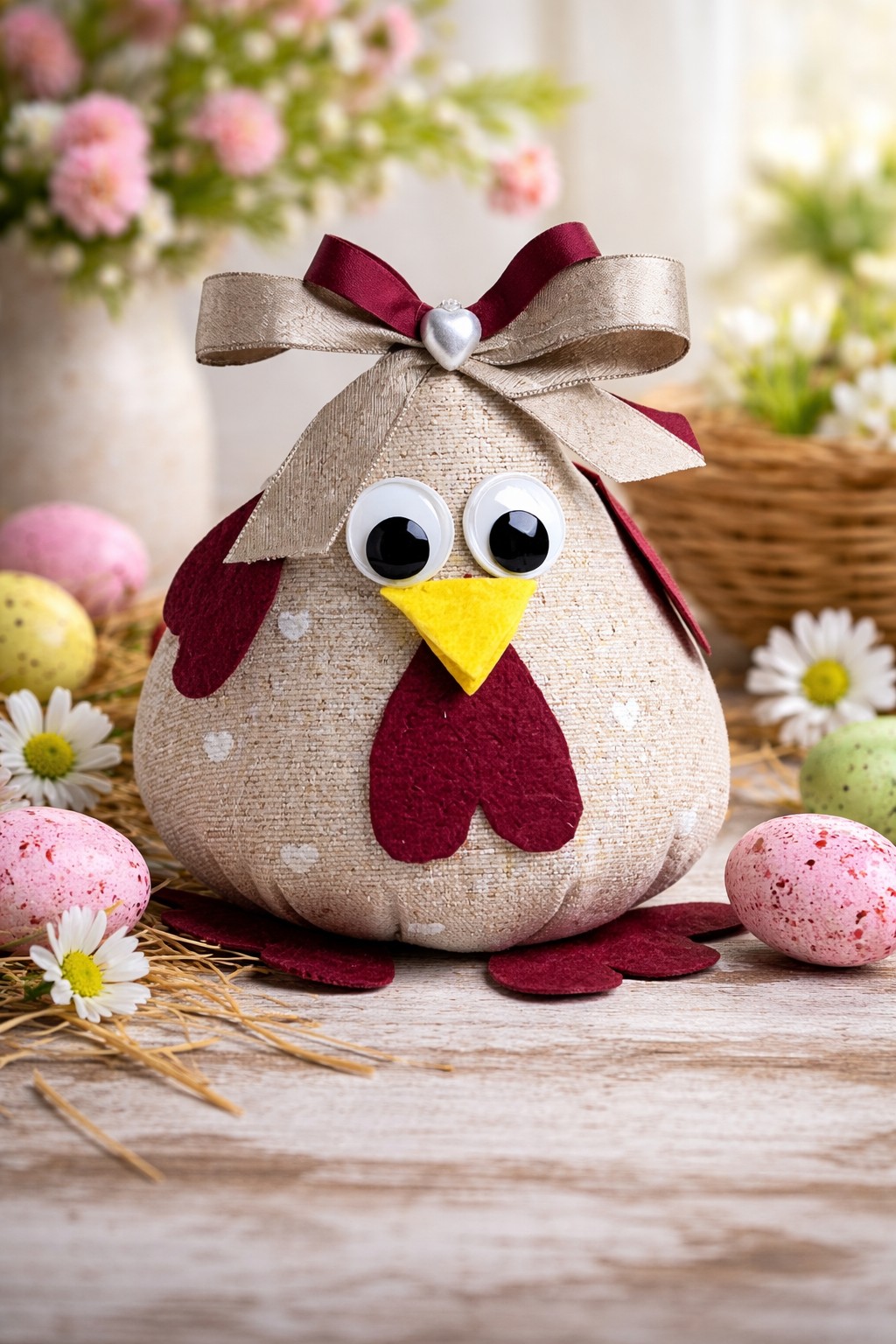 Chaque poule est entièrement réalisée à la main, avec soin et passion.