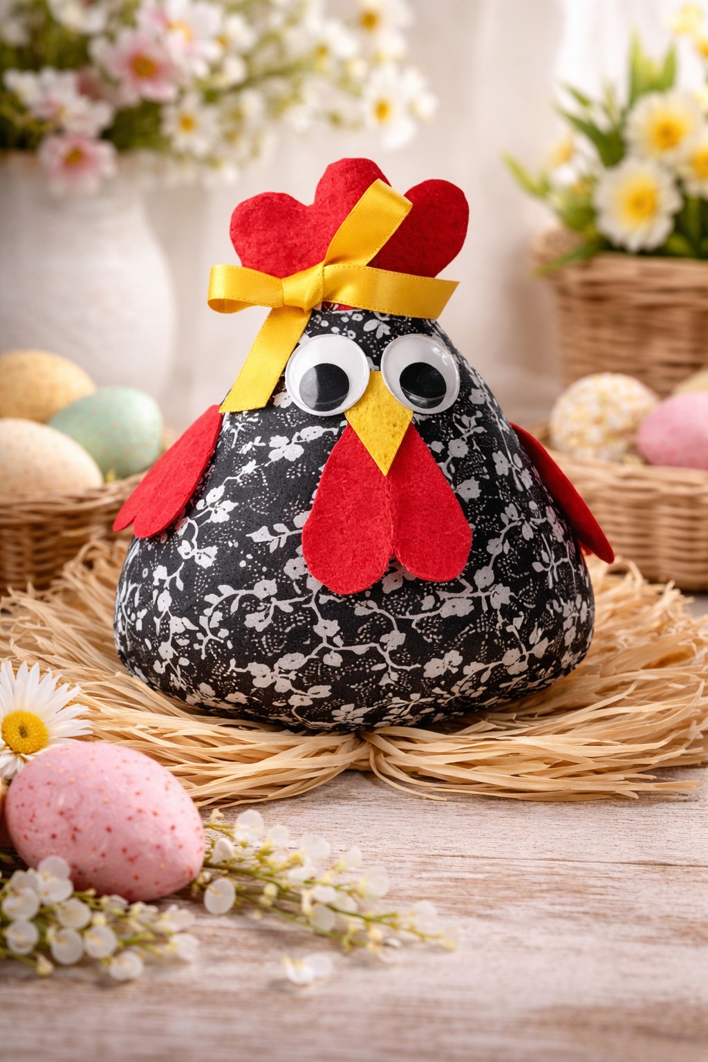 Cette petite poule décorative constitue également une idée cadeau originale pour Pâques.