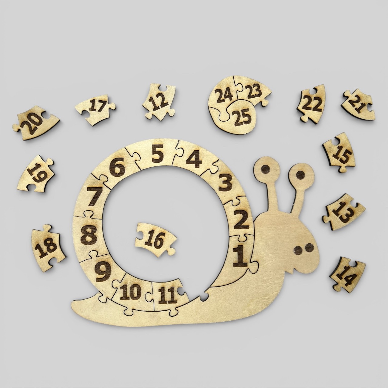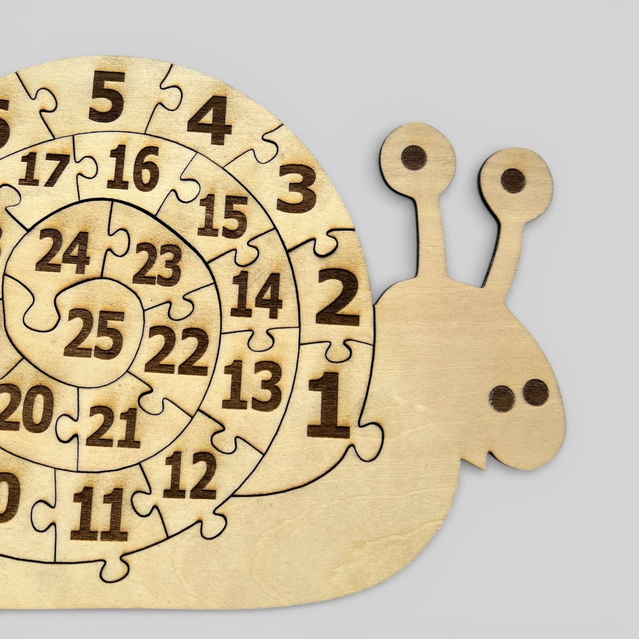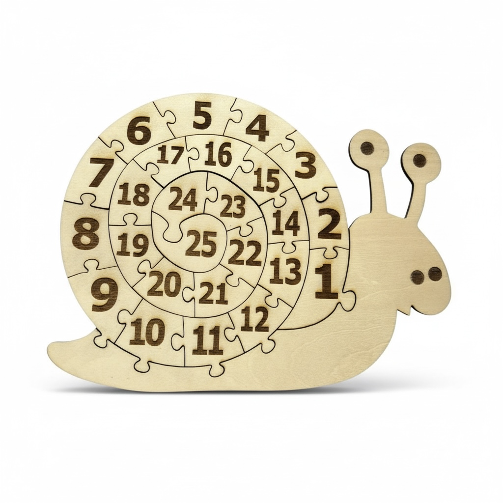 Faites découvrir les chiffres à votre enfant grâce à ce magnifique puzzle en forme d’escargot. En bois naturel, ses 25 pièces numérotées de 1 à 25 suivent une spirale captivante, idéale pour stimuler la concentration et la logique.